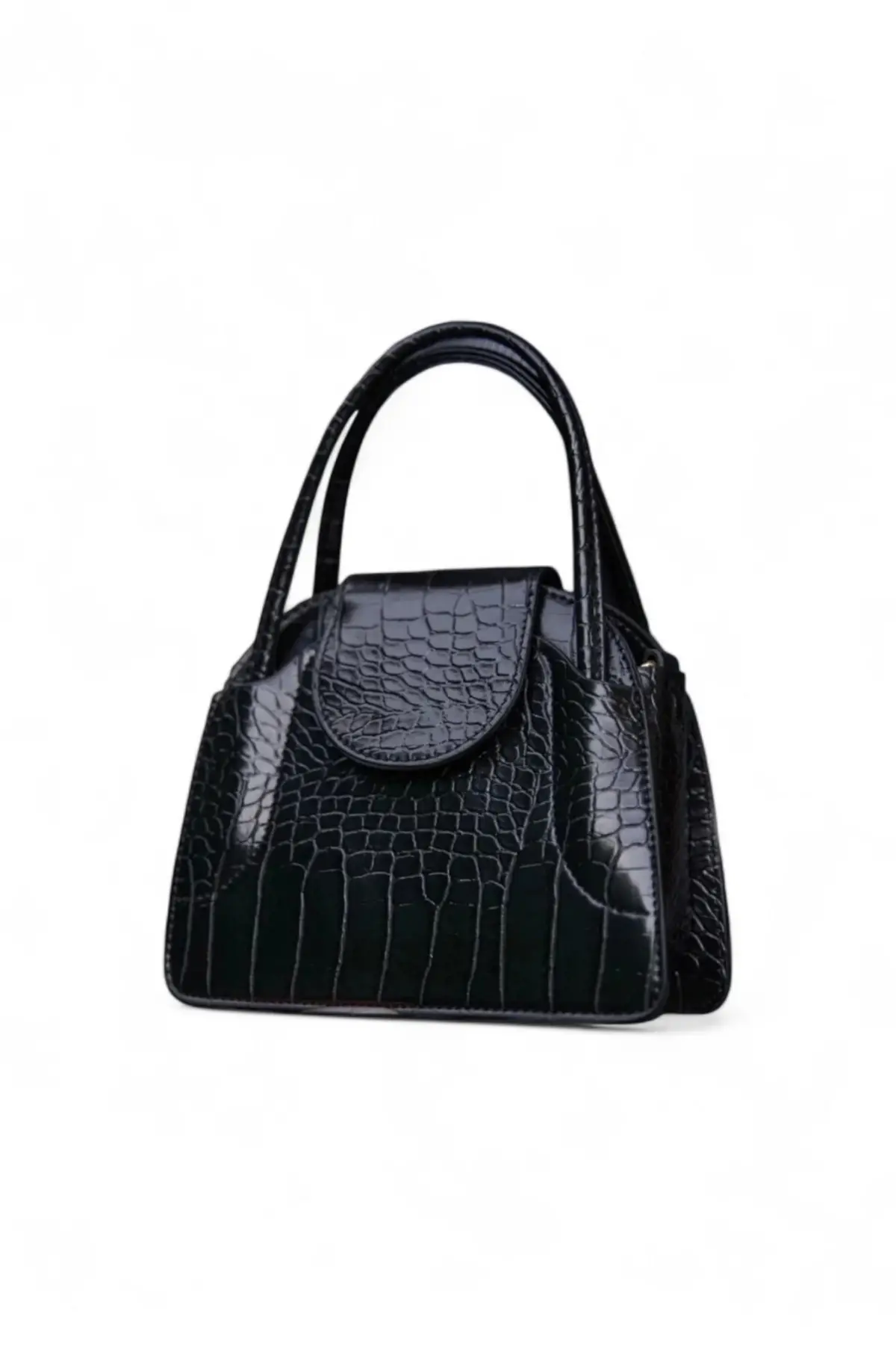 ✔ Materyal: Parlak siyah rugan croco desenli suni deri