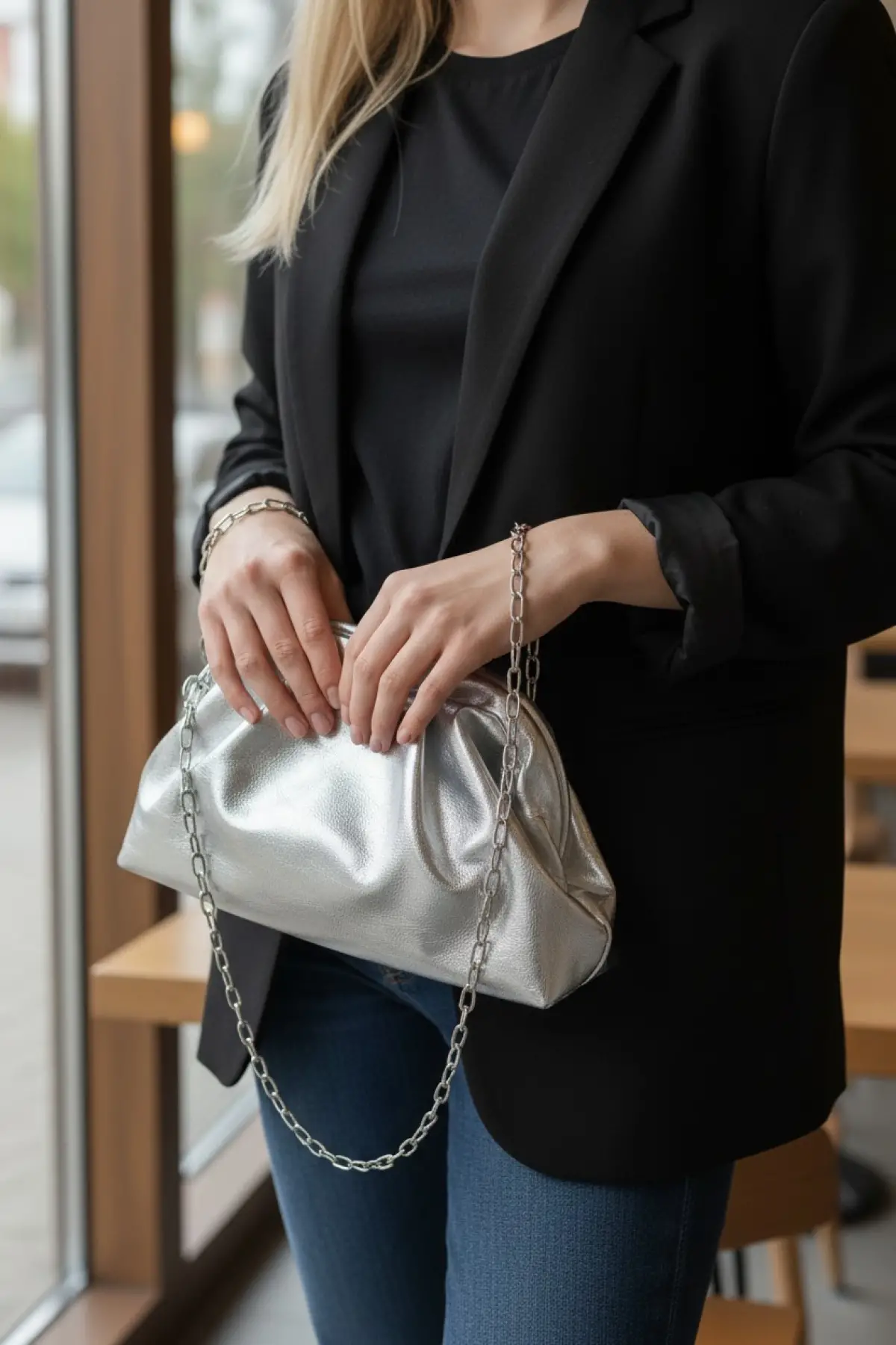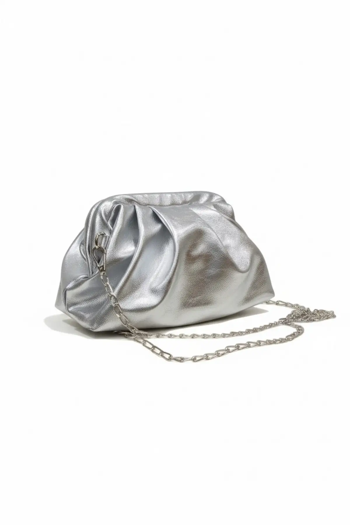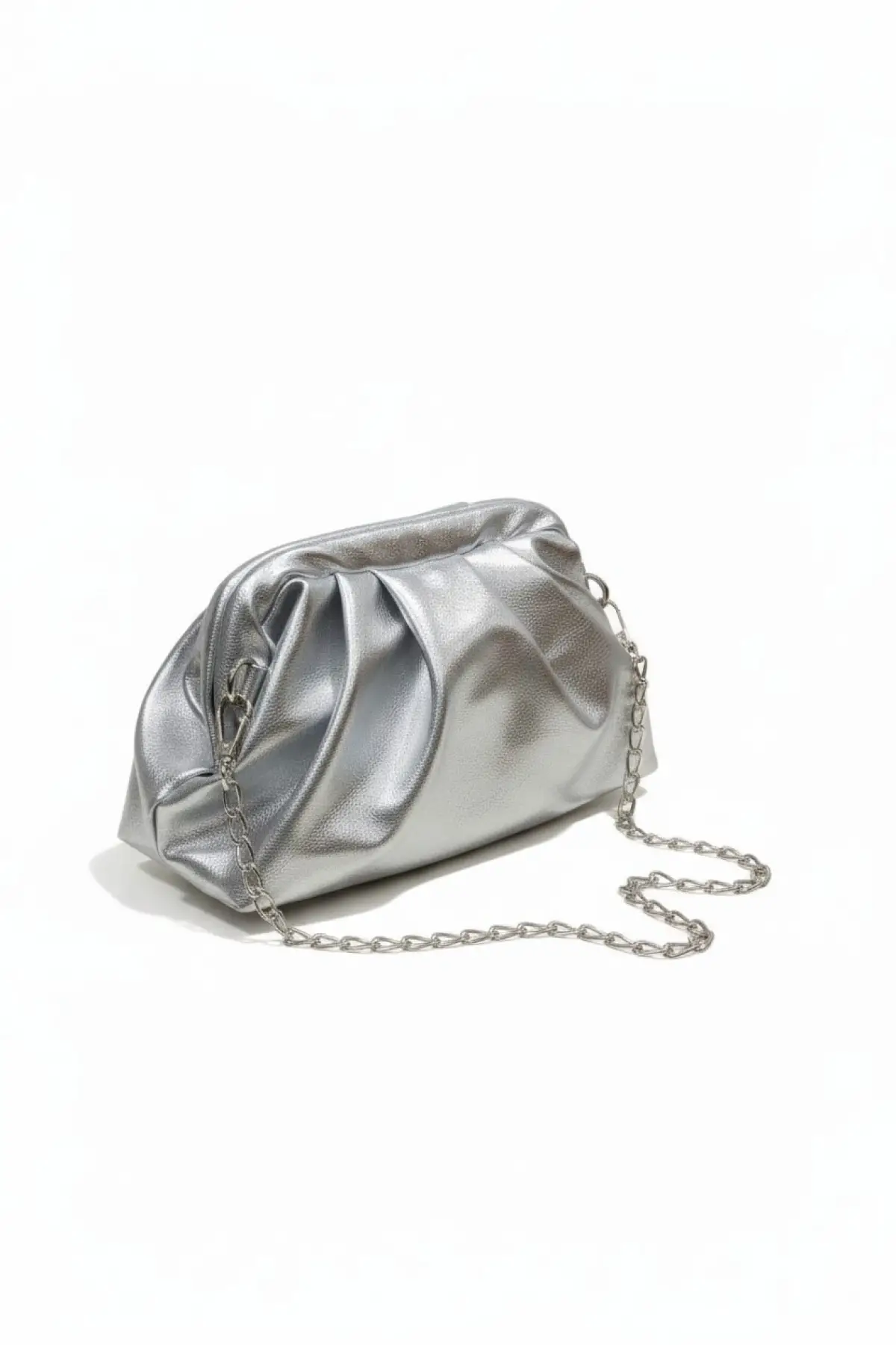 Amara Gümüş Vegan Deri Burs Kapamalı Zincir Askılı Kadın El Ve Omuz Çantası