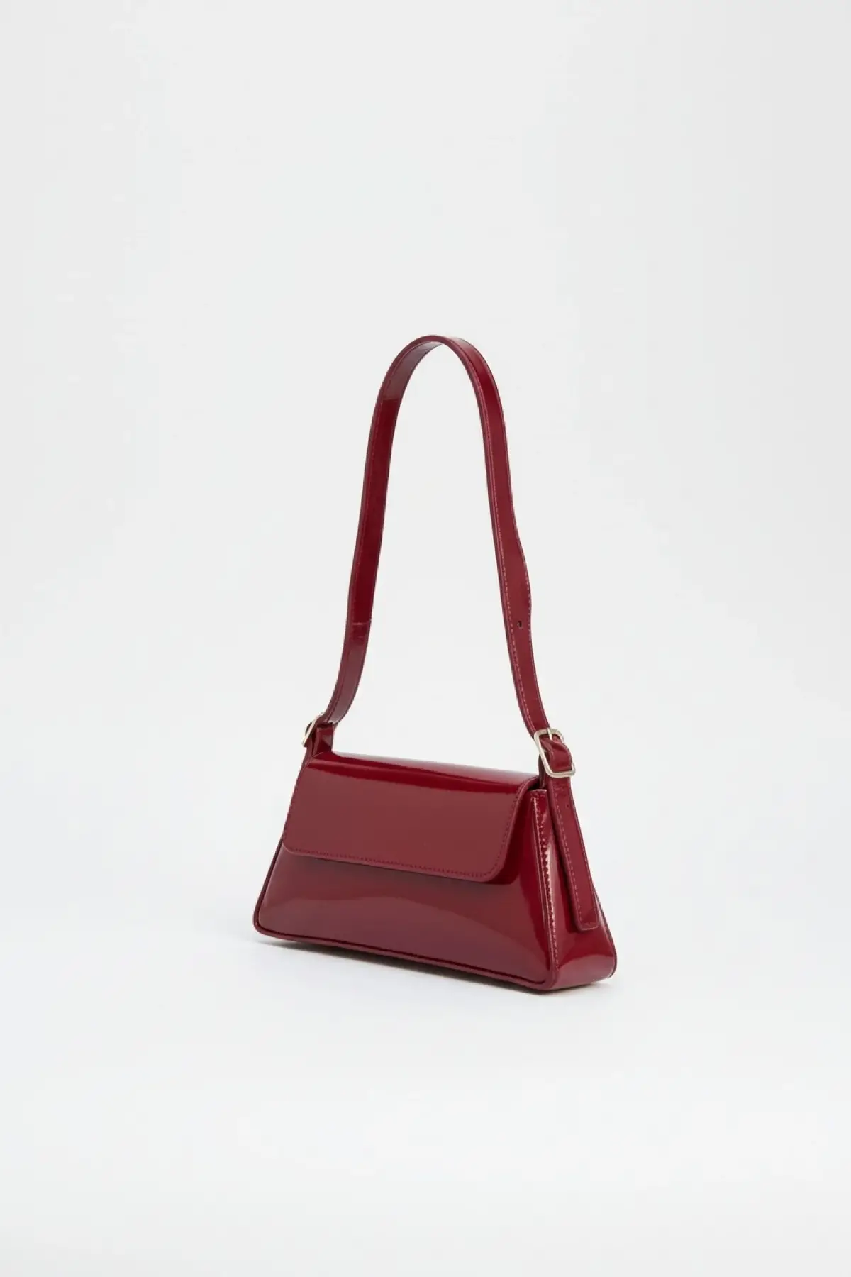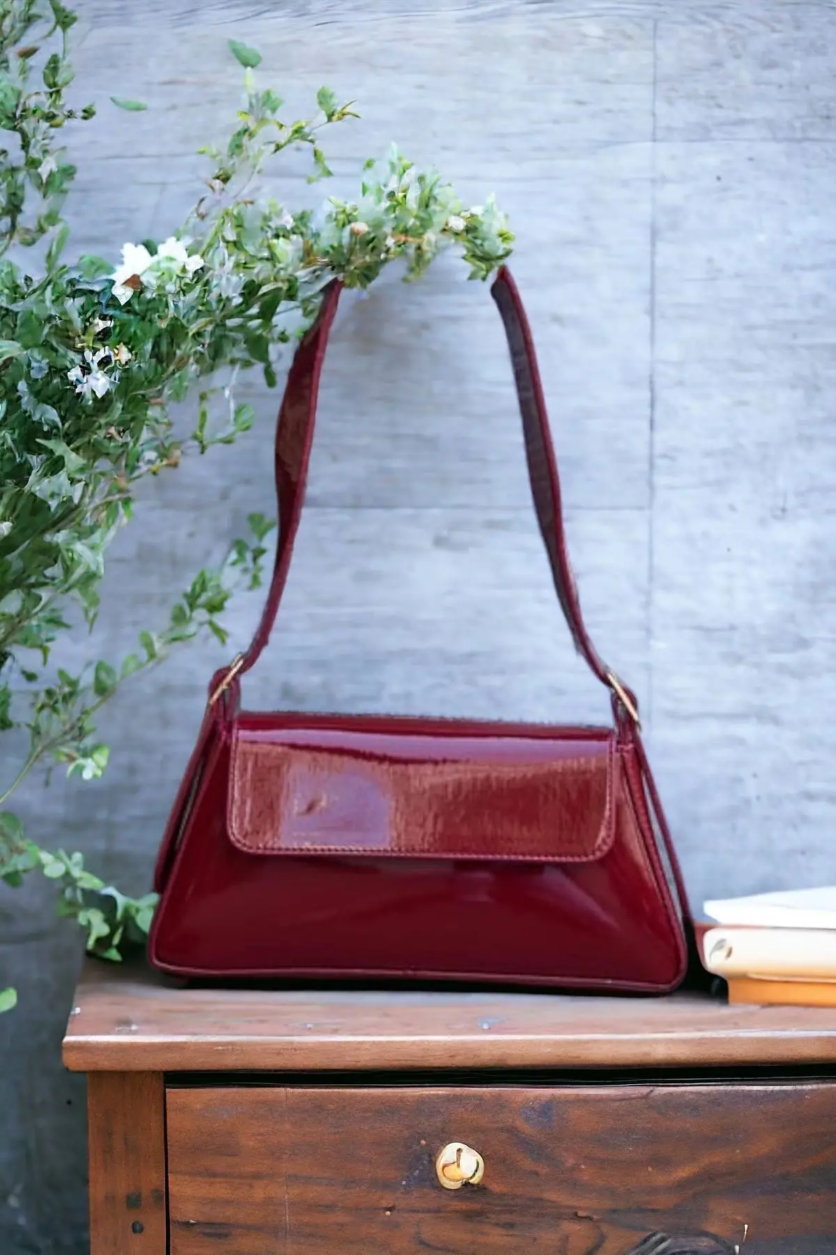 Anjeli Bordo Rugan Kapaklı Trend Baget Kadın Omuz Çantası