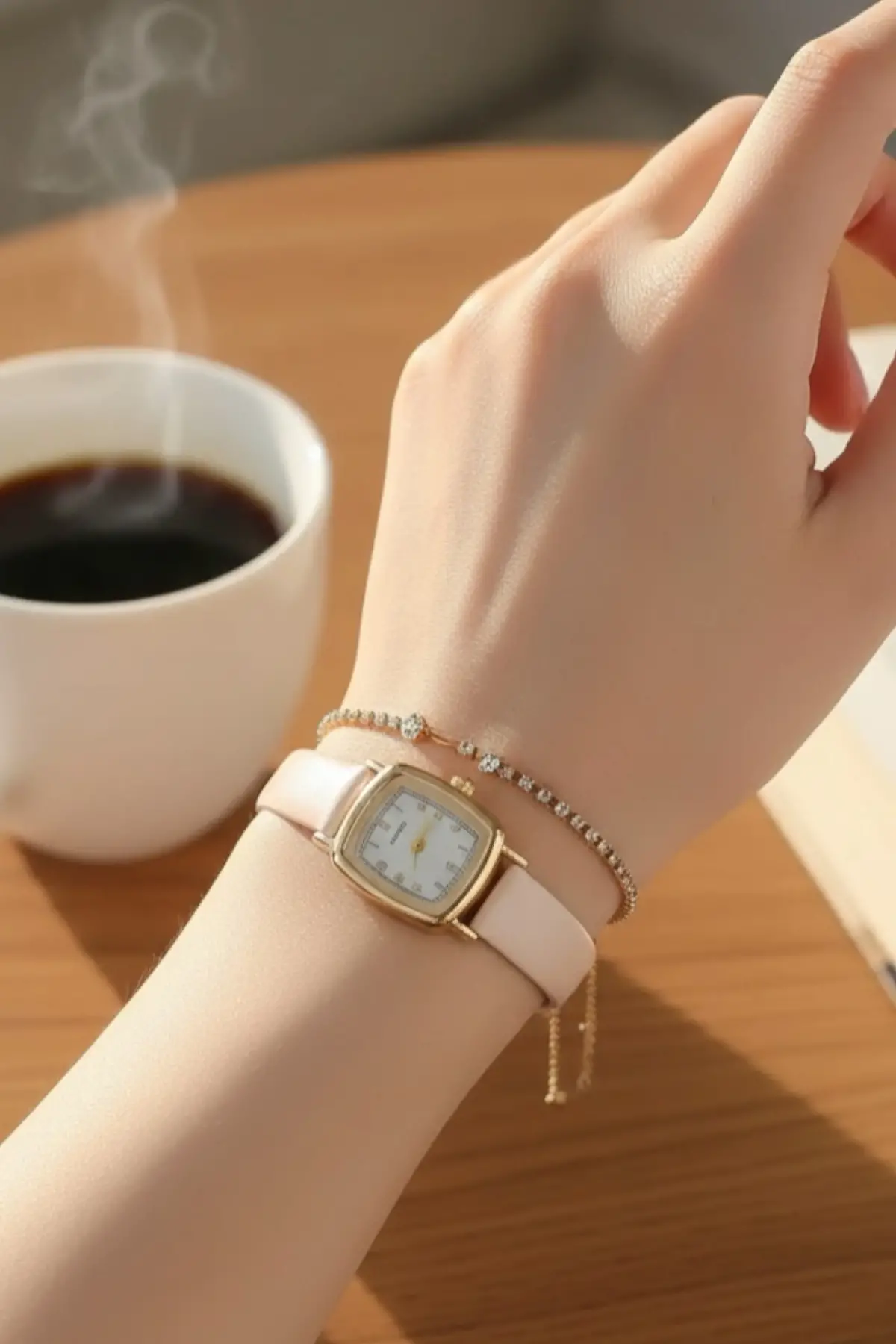 Lavinia Krem Cilt Deri Kordonlu Kare Minimal Kadın Kol Saati