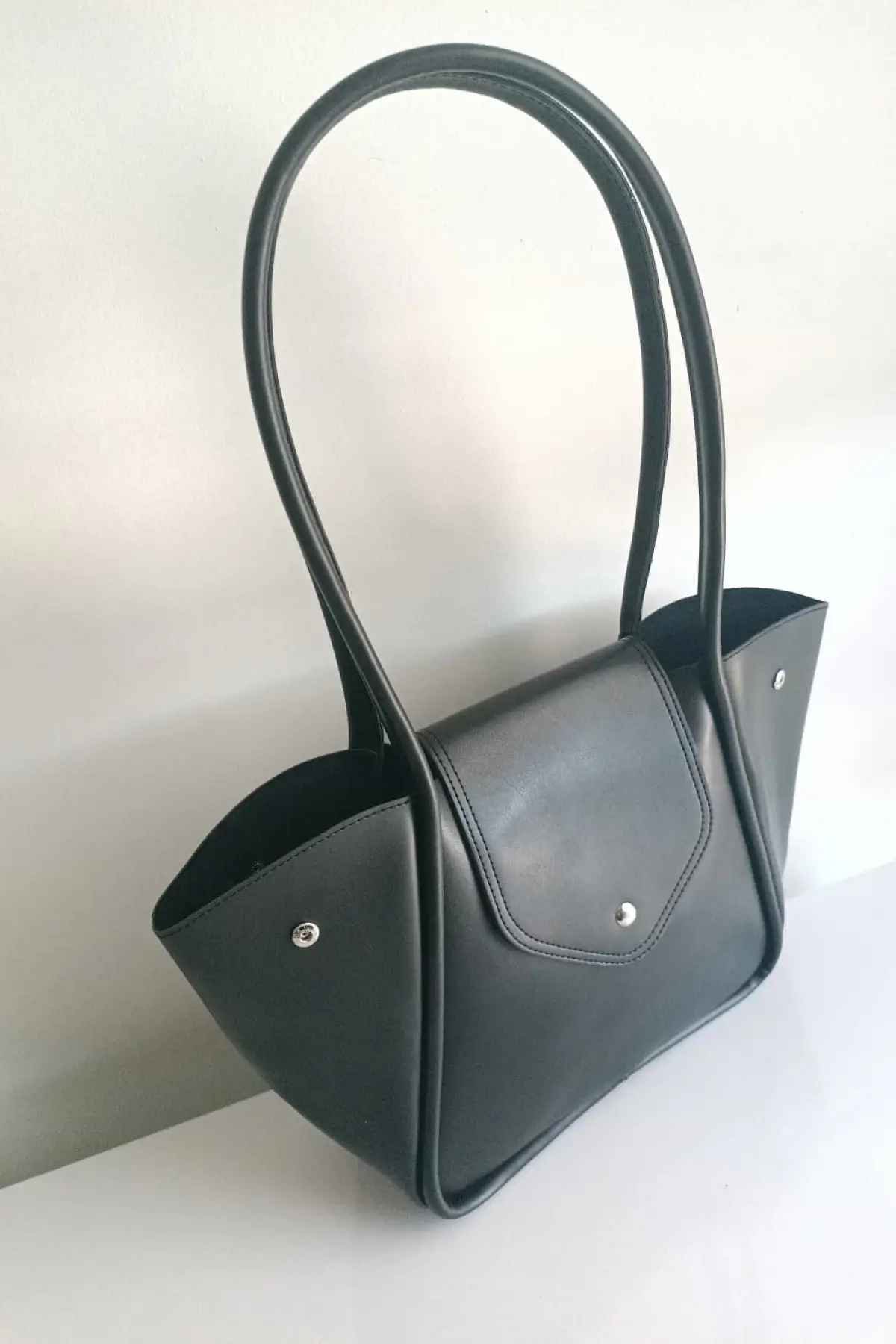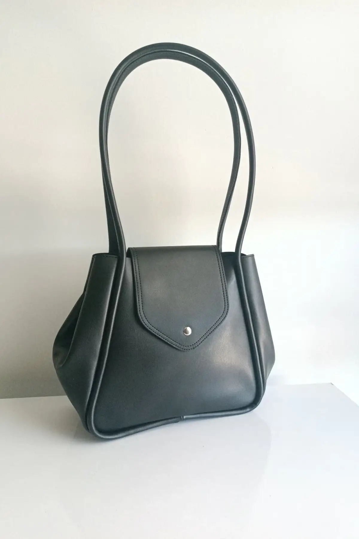 Monave Siyah Cilt Yandan Açılır Model Kadın El Ve Omuz Çantası