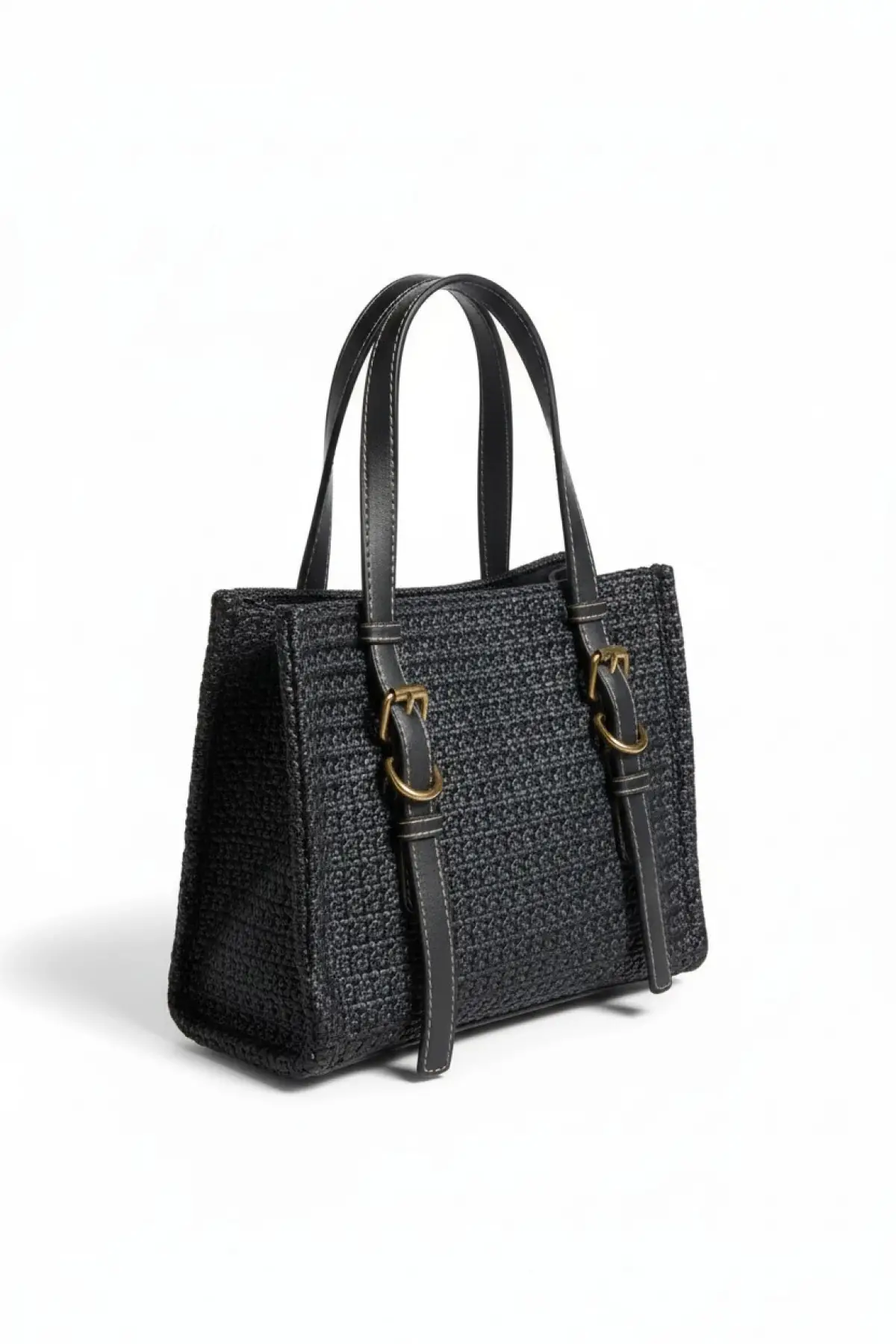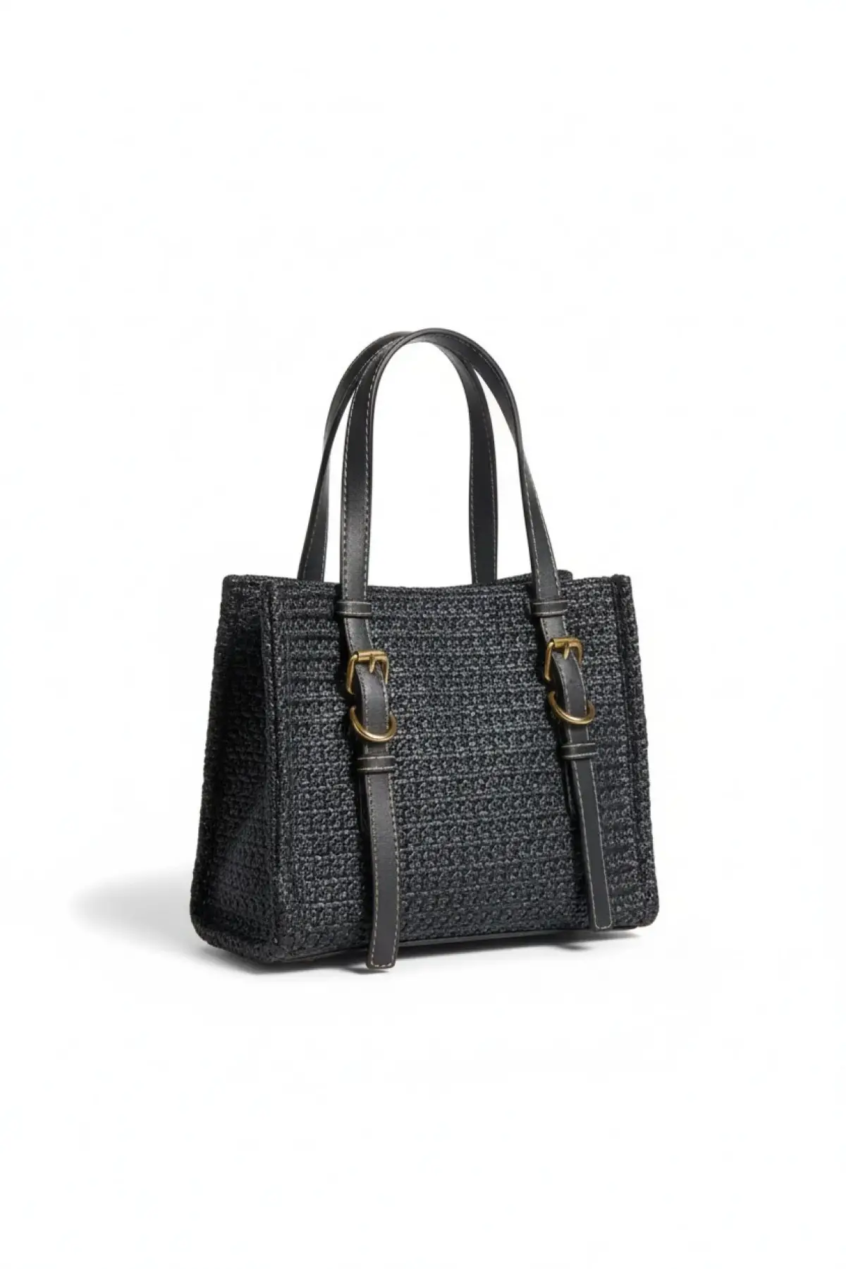 Asya Siyah Kadın Örgülü Tokalı El Ve Omuz Çantası