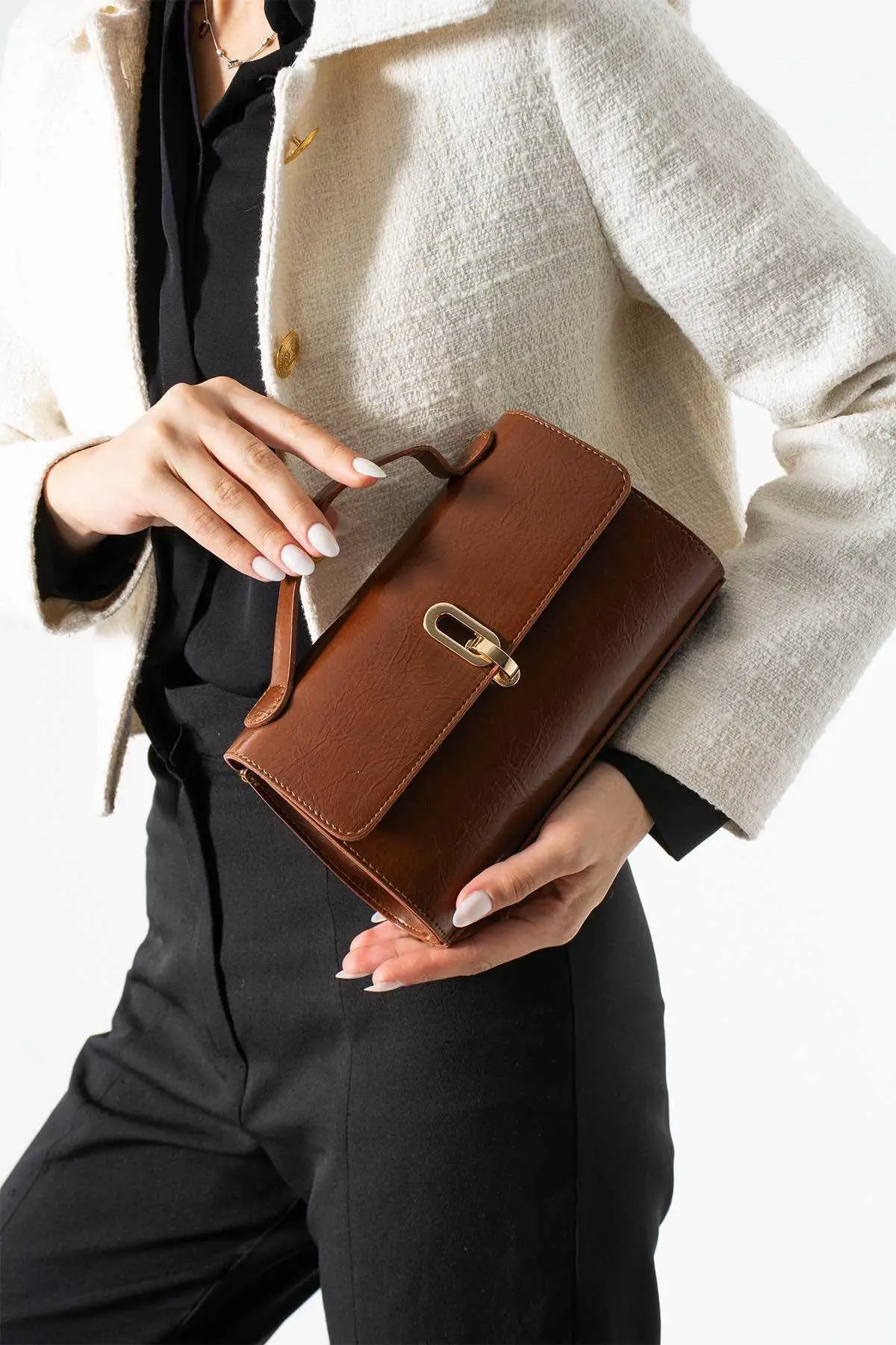 Bagora Taba Cilt tasarım Kilitli Kadın El Ve Omuz Çantası