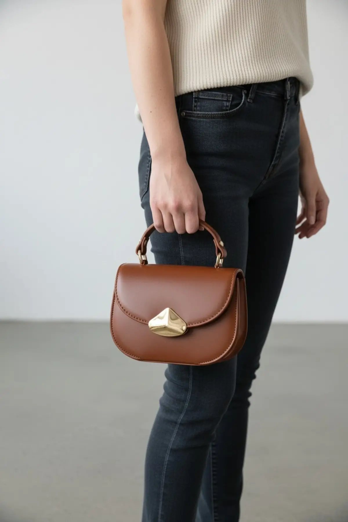 Melora Taba Vegan Deri Düğüm Detaylı Kadın El Ve Omuz Çantası