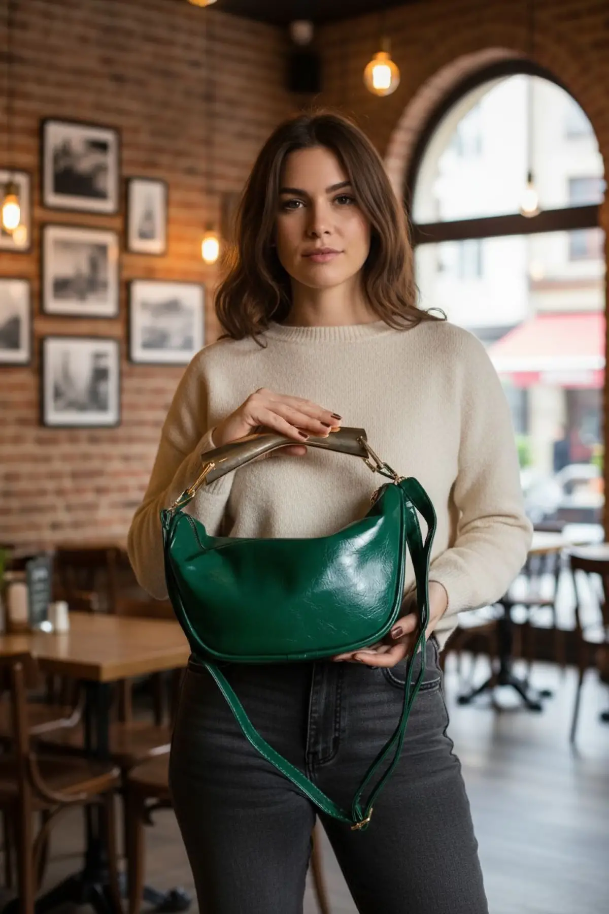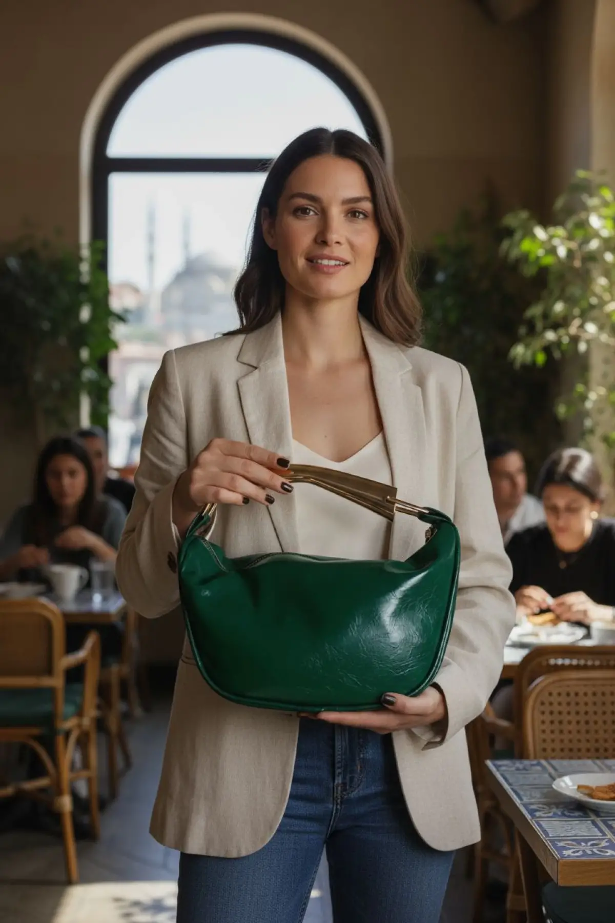 Begonia Yeşil Gold Tasarım Saplı Kadın El Kol Ve Omuz Çantası