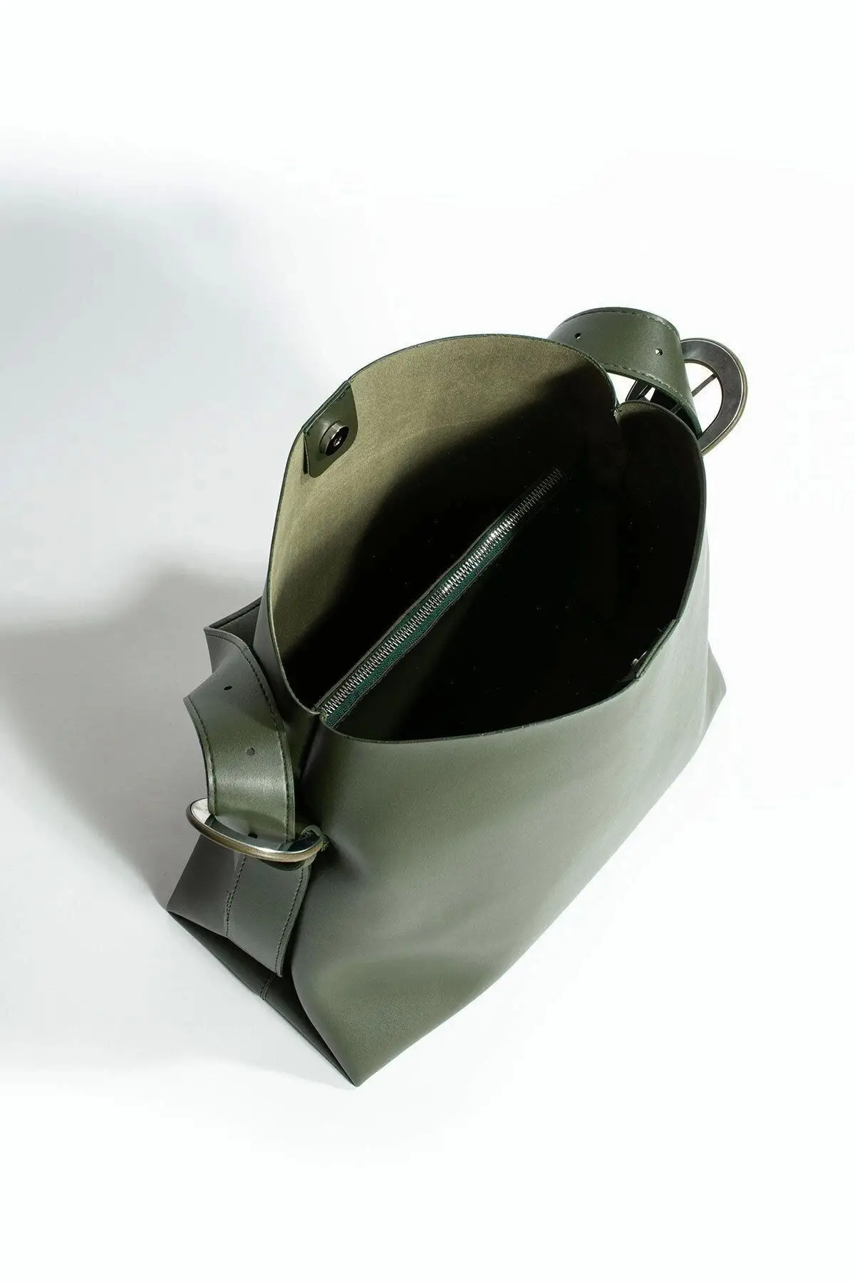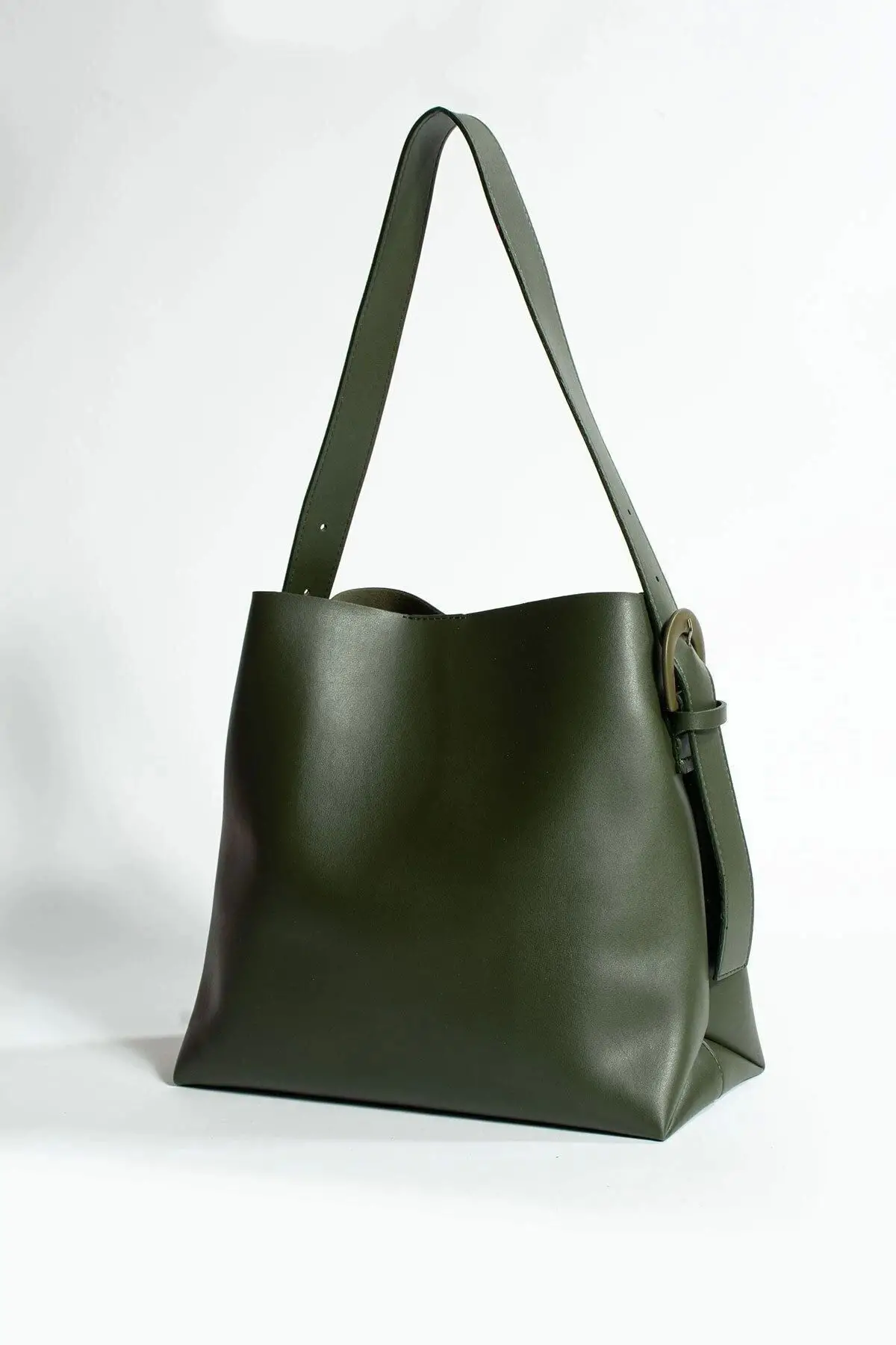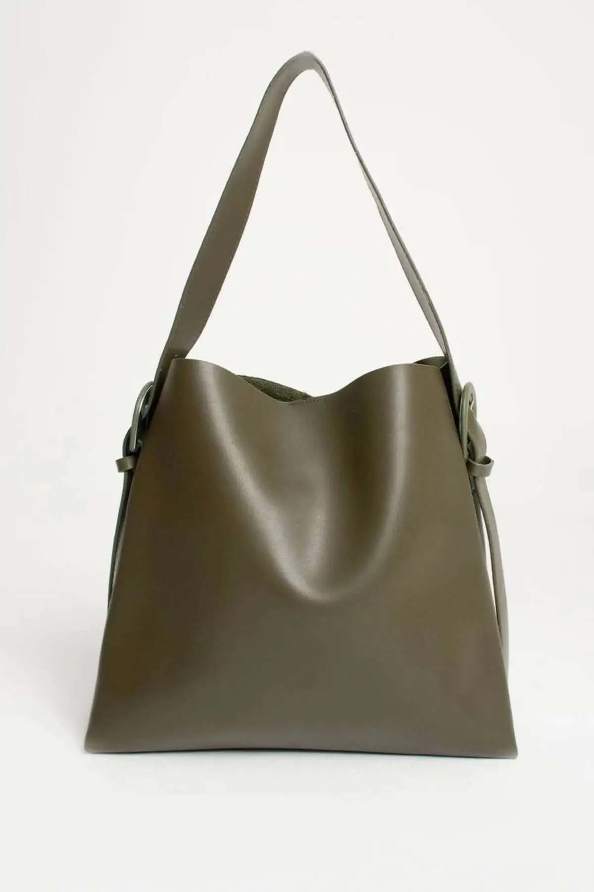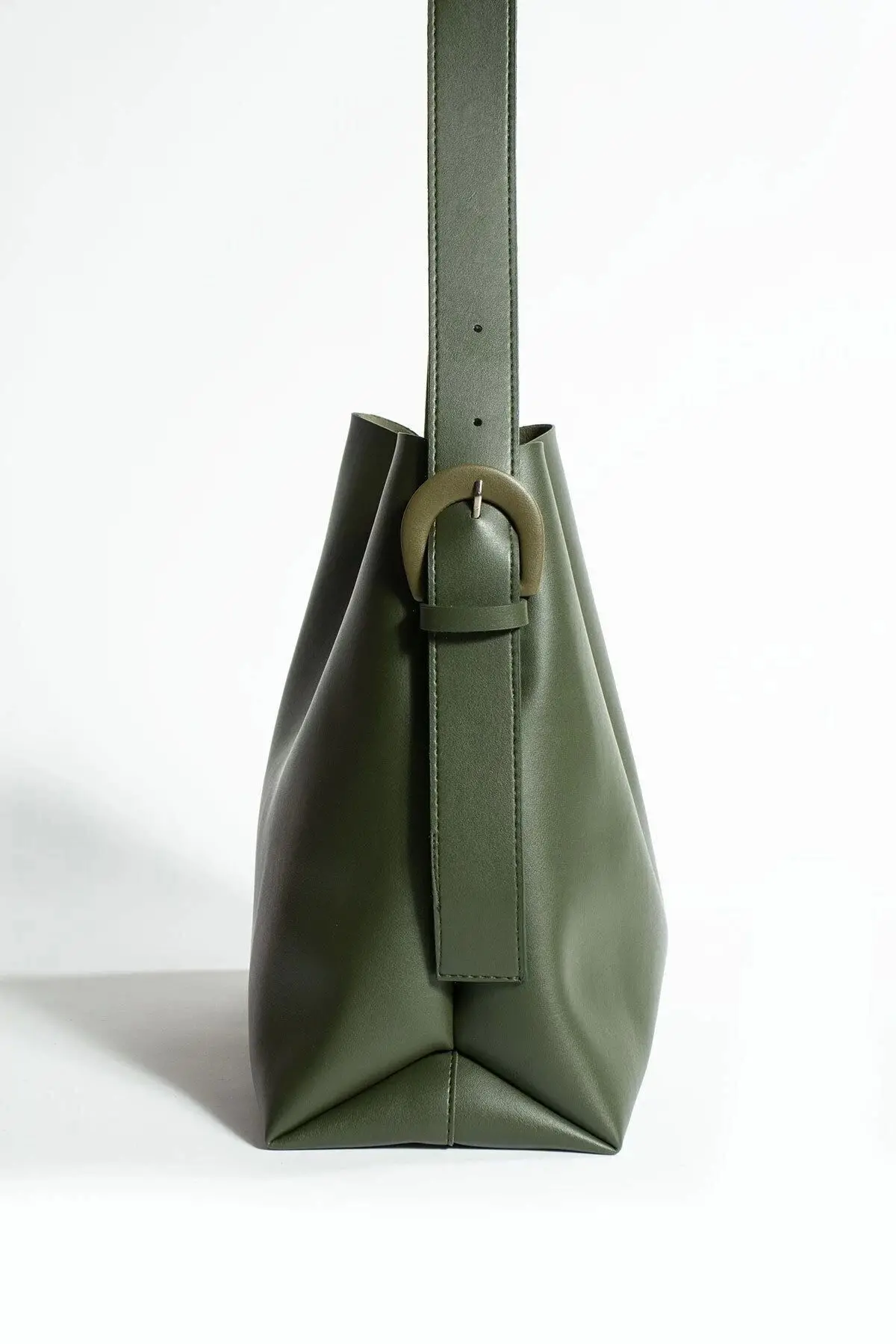 Nastroy Büyük Boy Kemer Detaylı Çıt Çıt Kapamalı Shopper Haki Cilt Trend Kadın Omuz Çantası