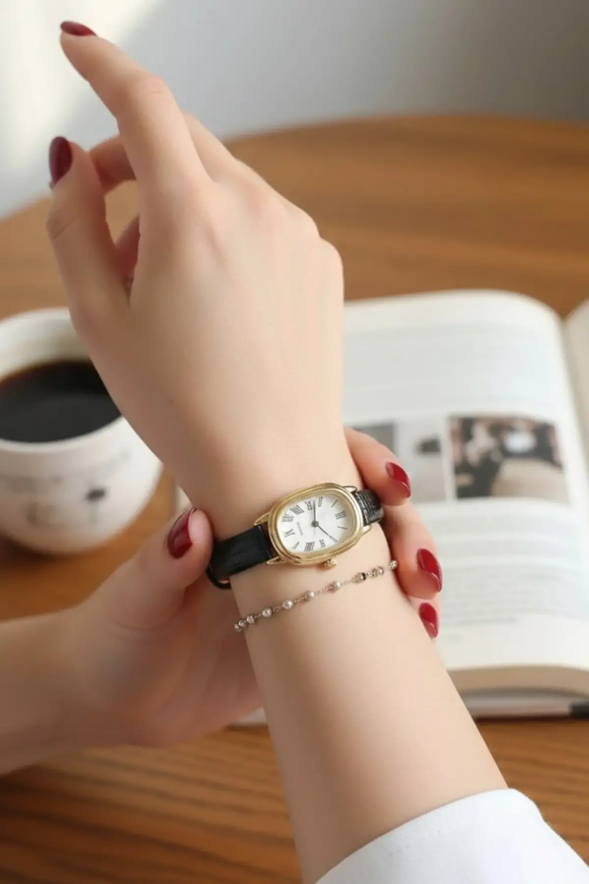 Vivienne Siyah Cilt Deri Kordonlu Yuvarlak Minimal Kadın Kol Saati