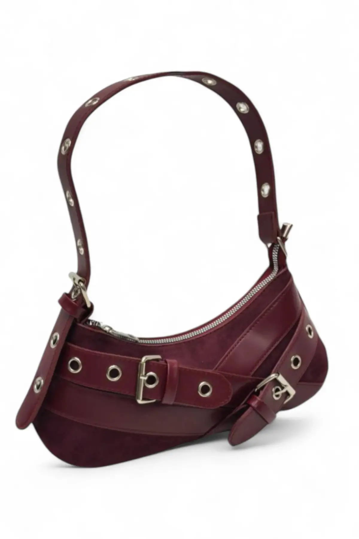 Casey Bordo Süet-Cilt Kemer Detaylı Kadın Baget Omuz Çantası