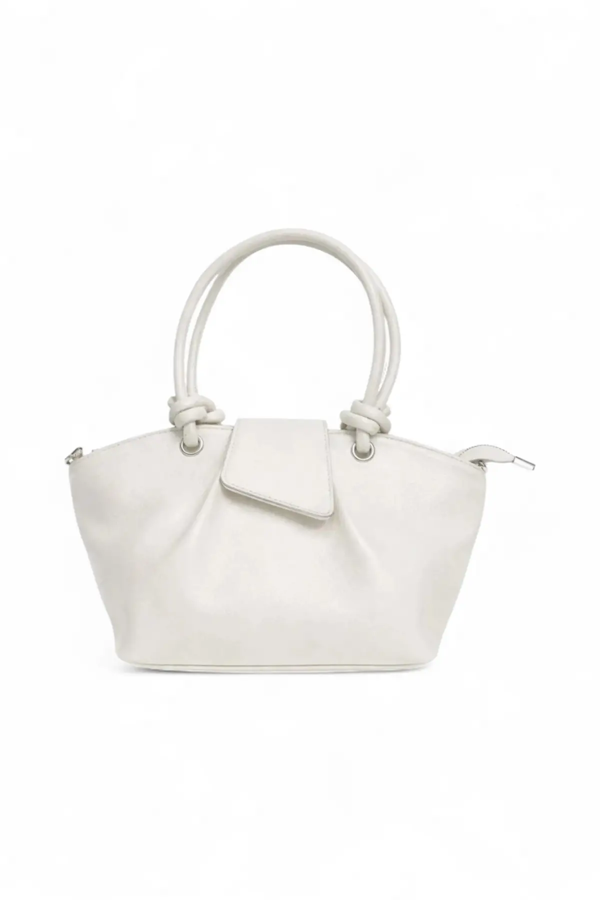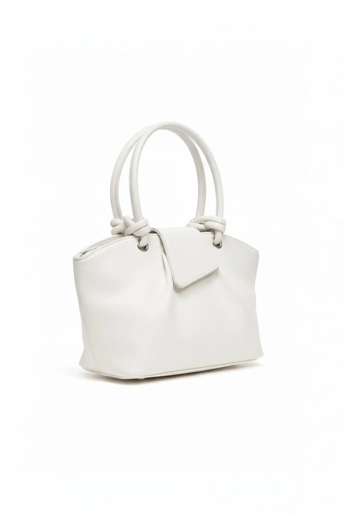 Melora Krem Vegan Deri Düğüm Detaylı Kadın El Ve Omuz Çantası