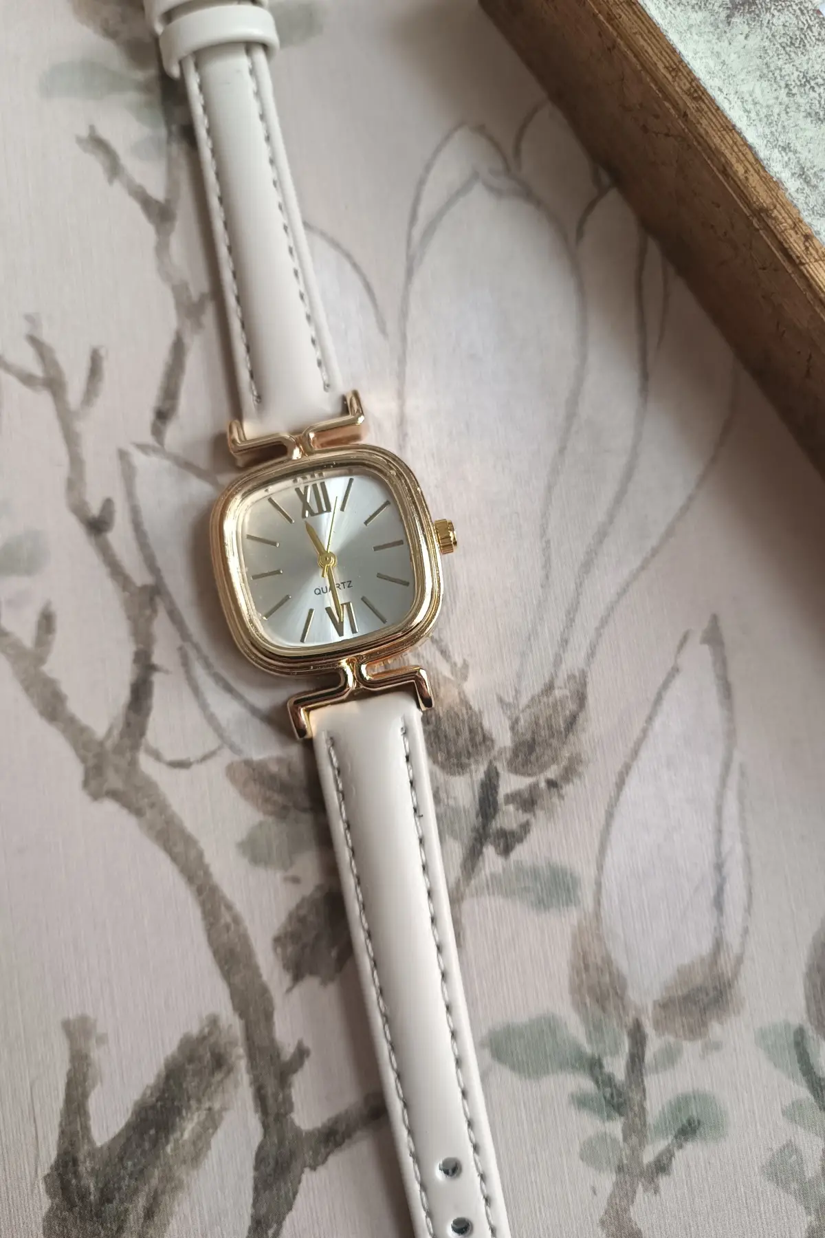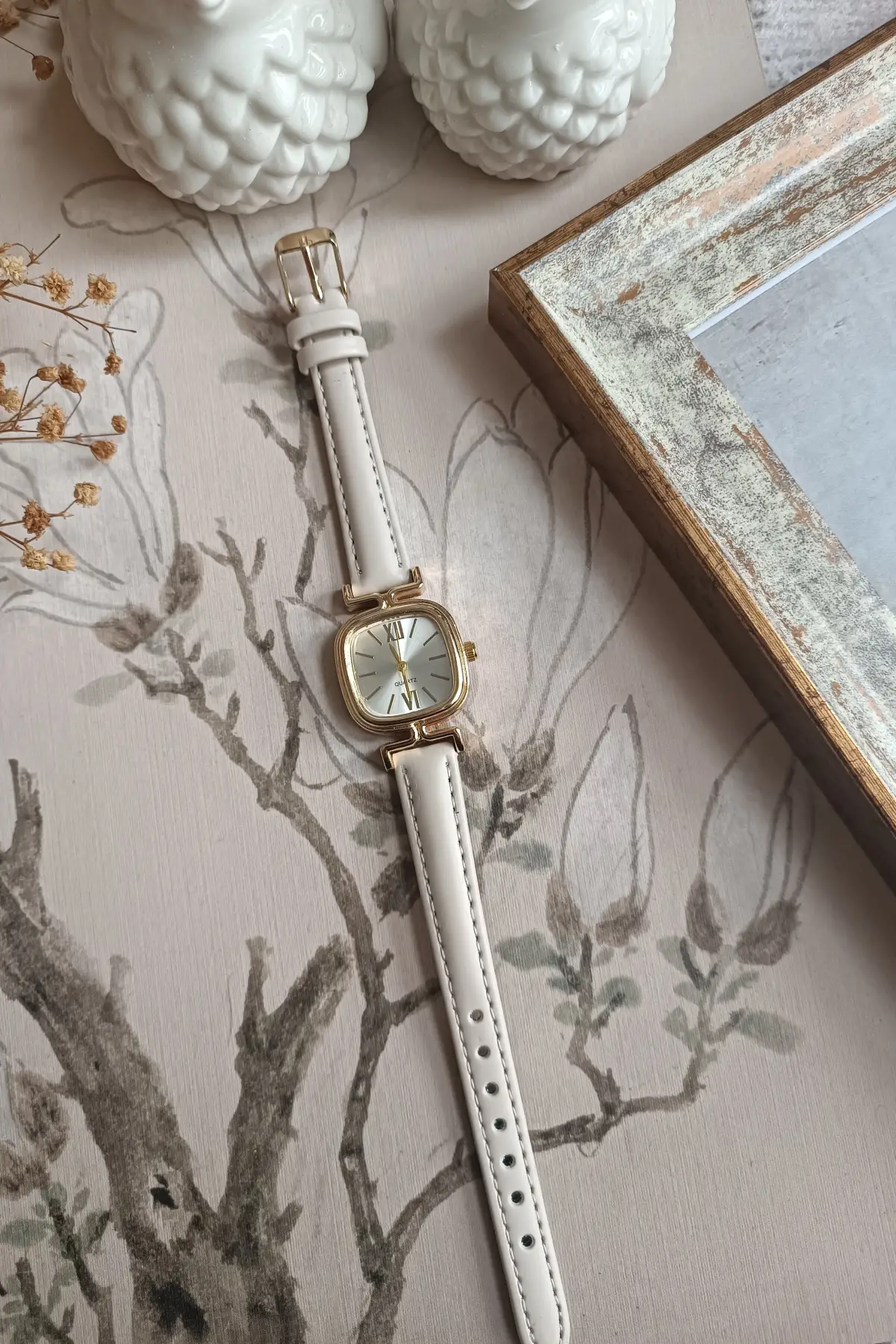 Elira Krem Kordon Beyaz Kardan Kare Vintage Kadın Kol Saati