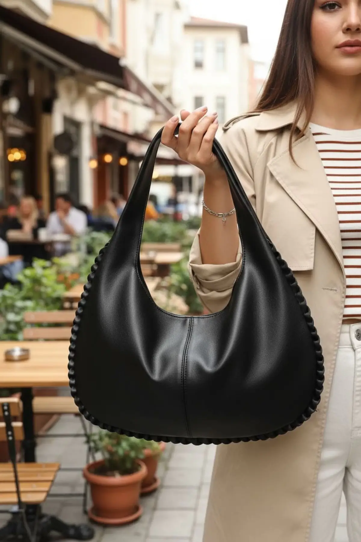 Ellevo Siyah Cilt Fermuar Kapamalı Kadın El Ve Omuz Çantası