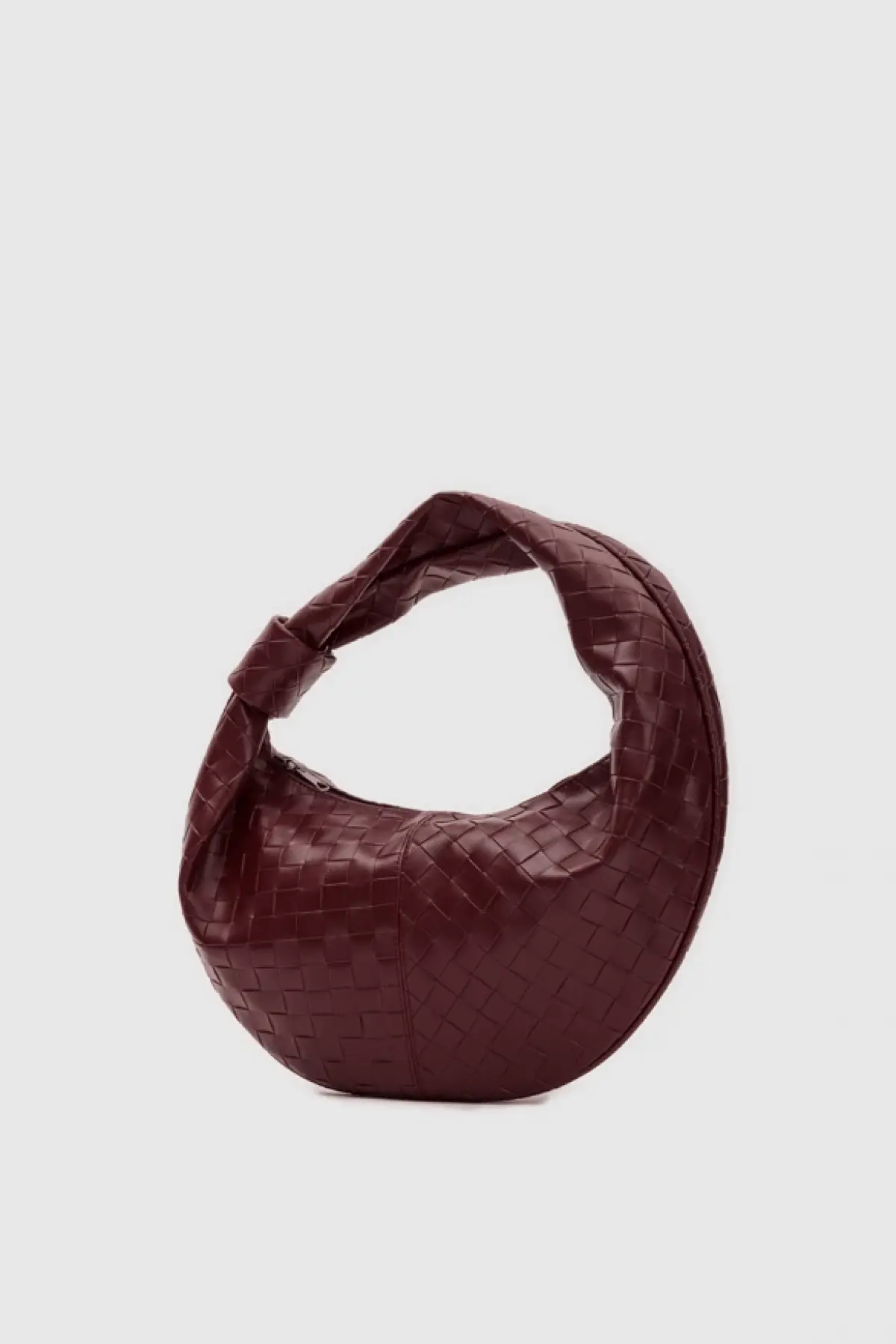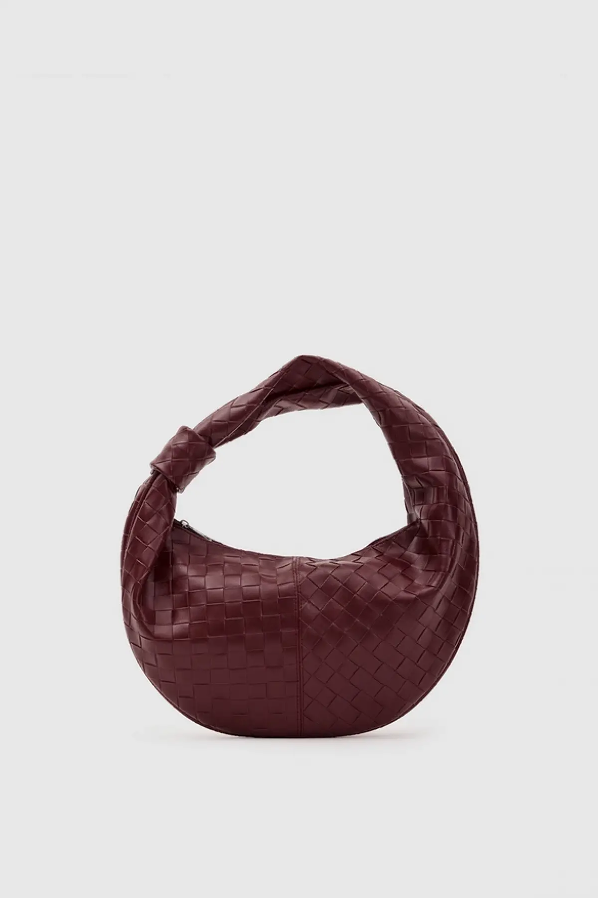 Ellevo Bordo Cilt Örgü Fermuar Kapamalı Kadın El Ve Omuz Çantası