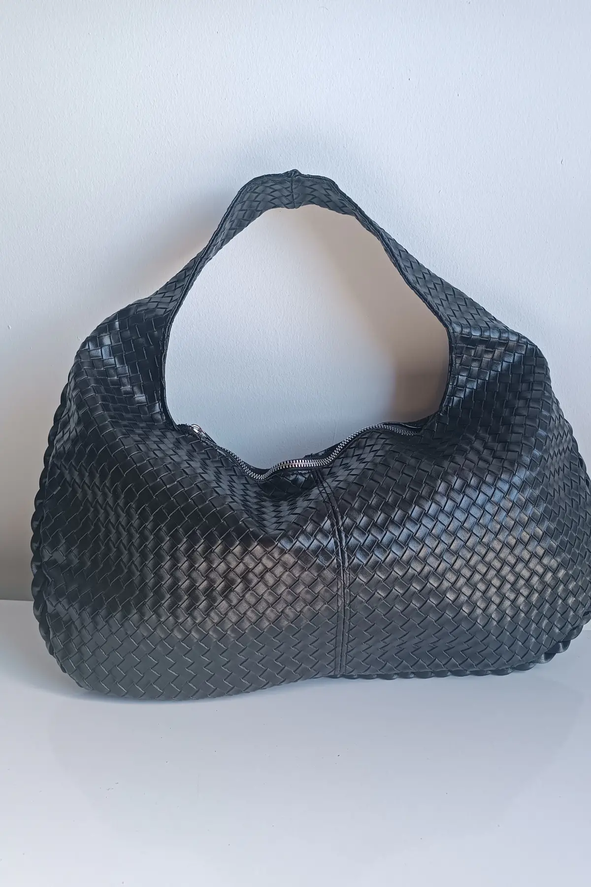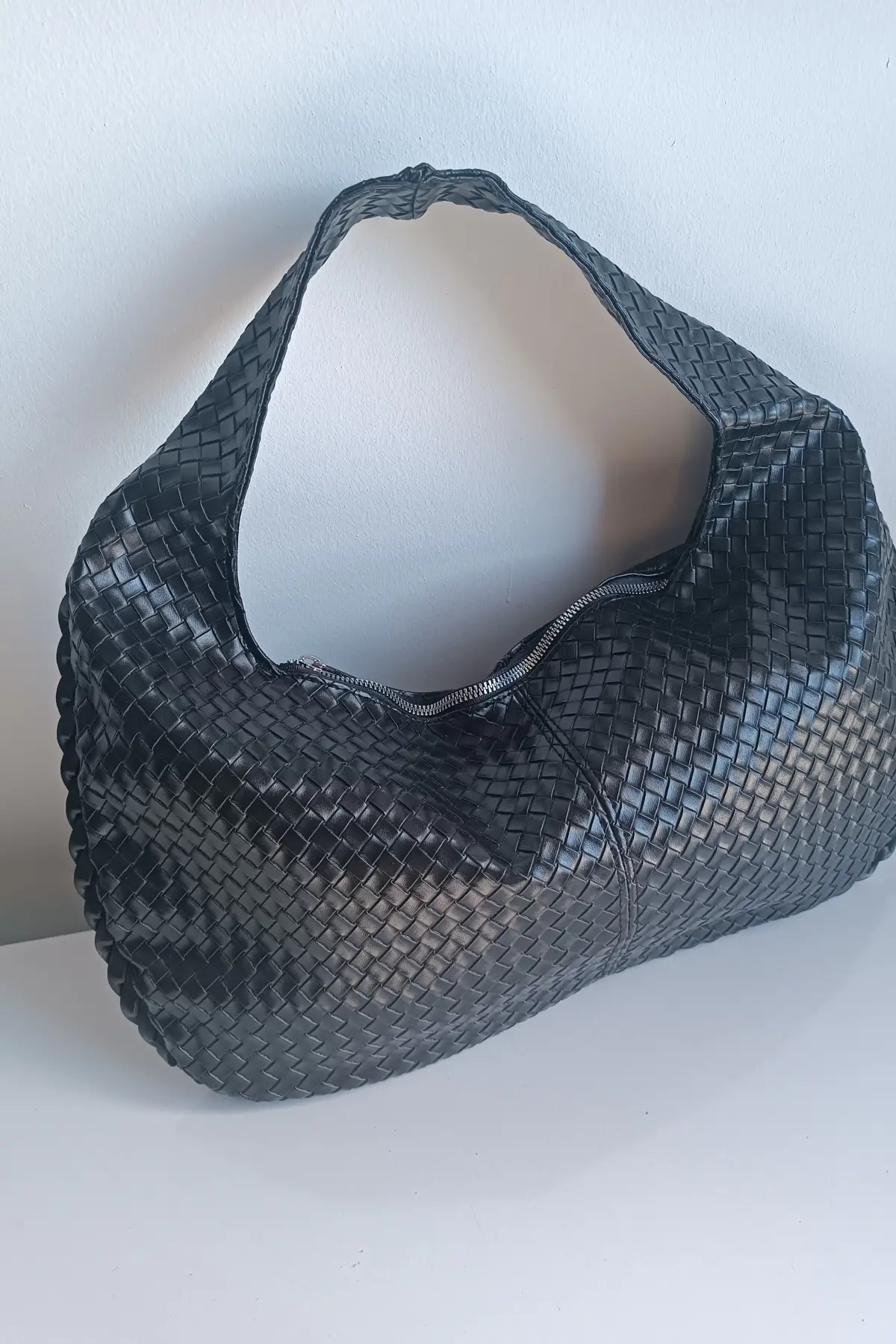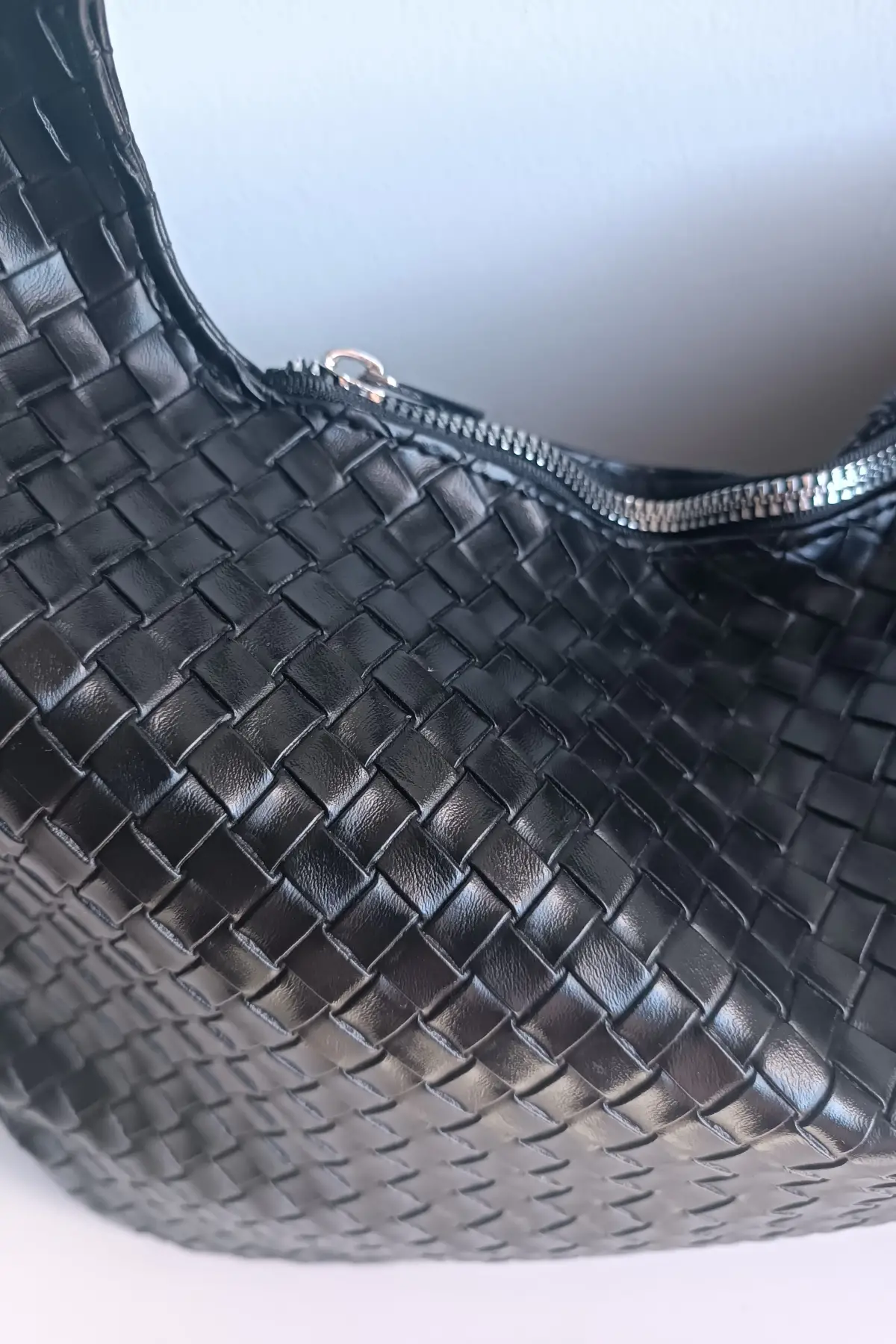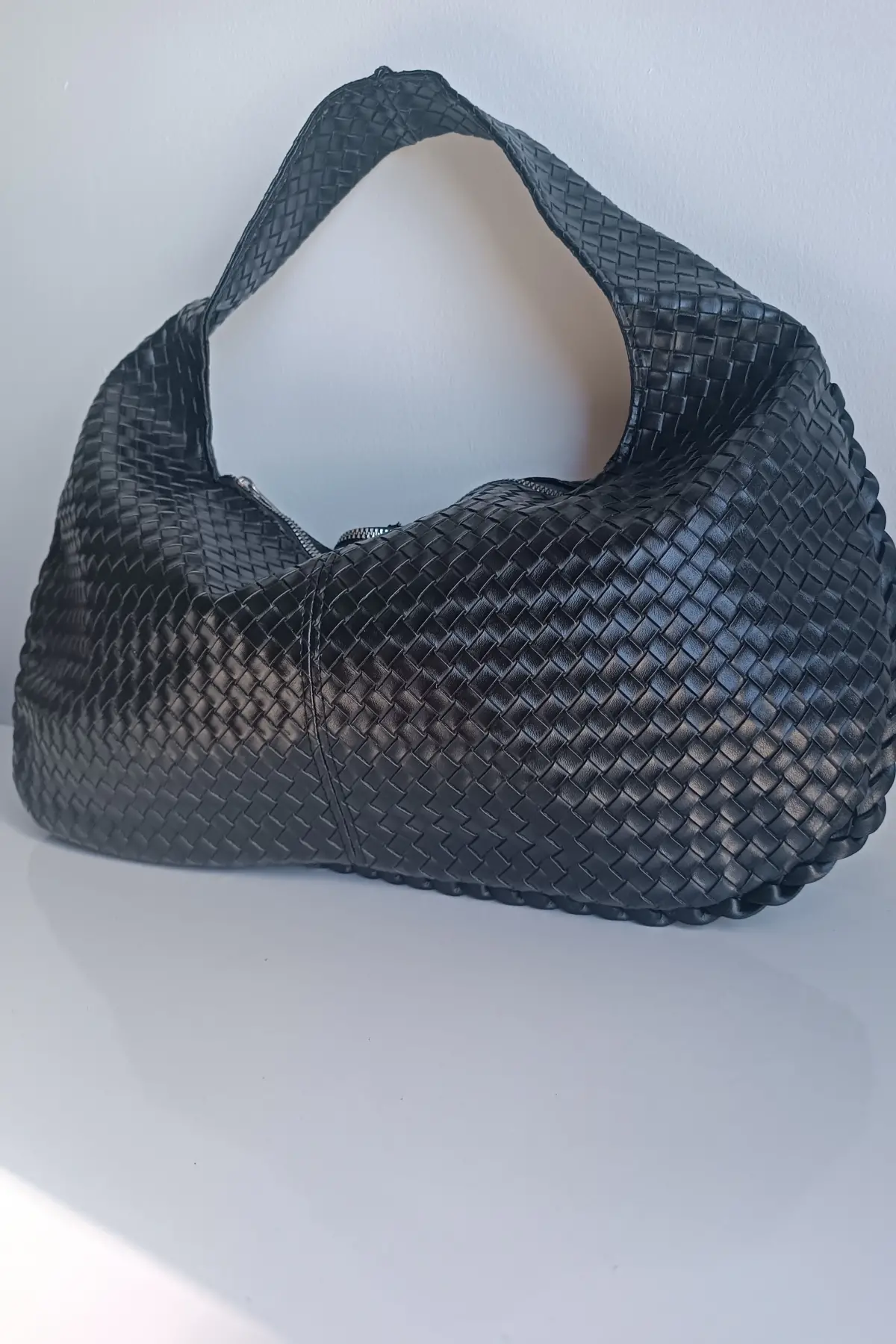 Ellevo Siyah Cilt Sık Örgü Fermuar Kapamalı Kadın El Ve Omuz Çantası