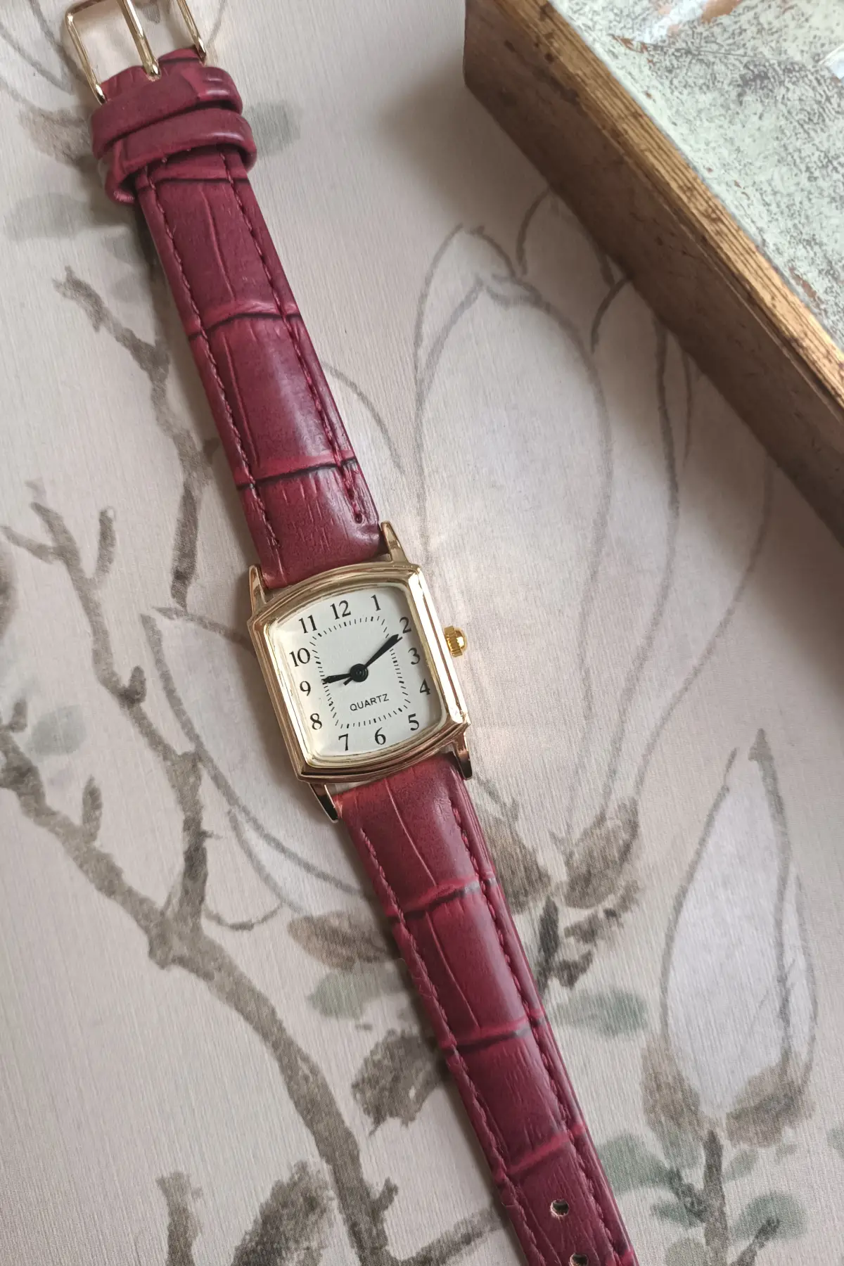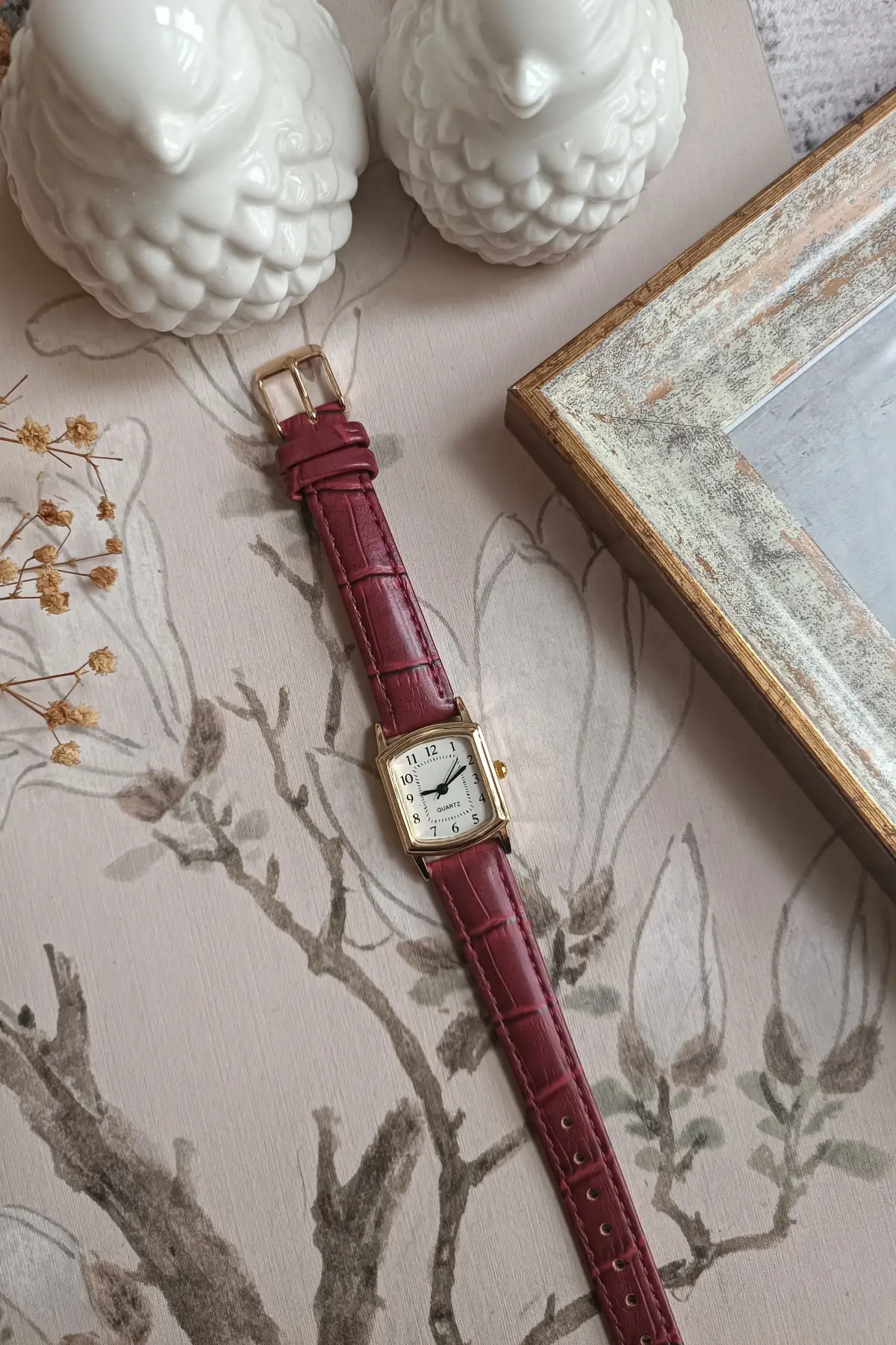 Elira Bordo Kordon Beyaz Kardan Kare Vintage Kadın Kol Saati