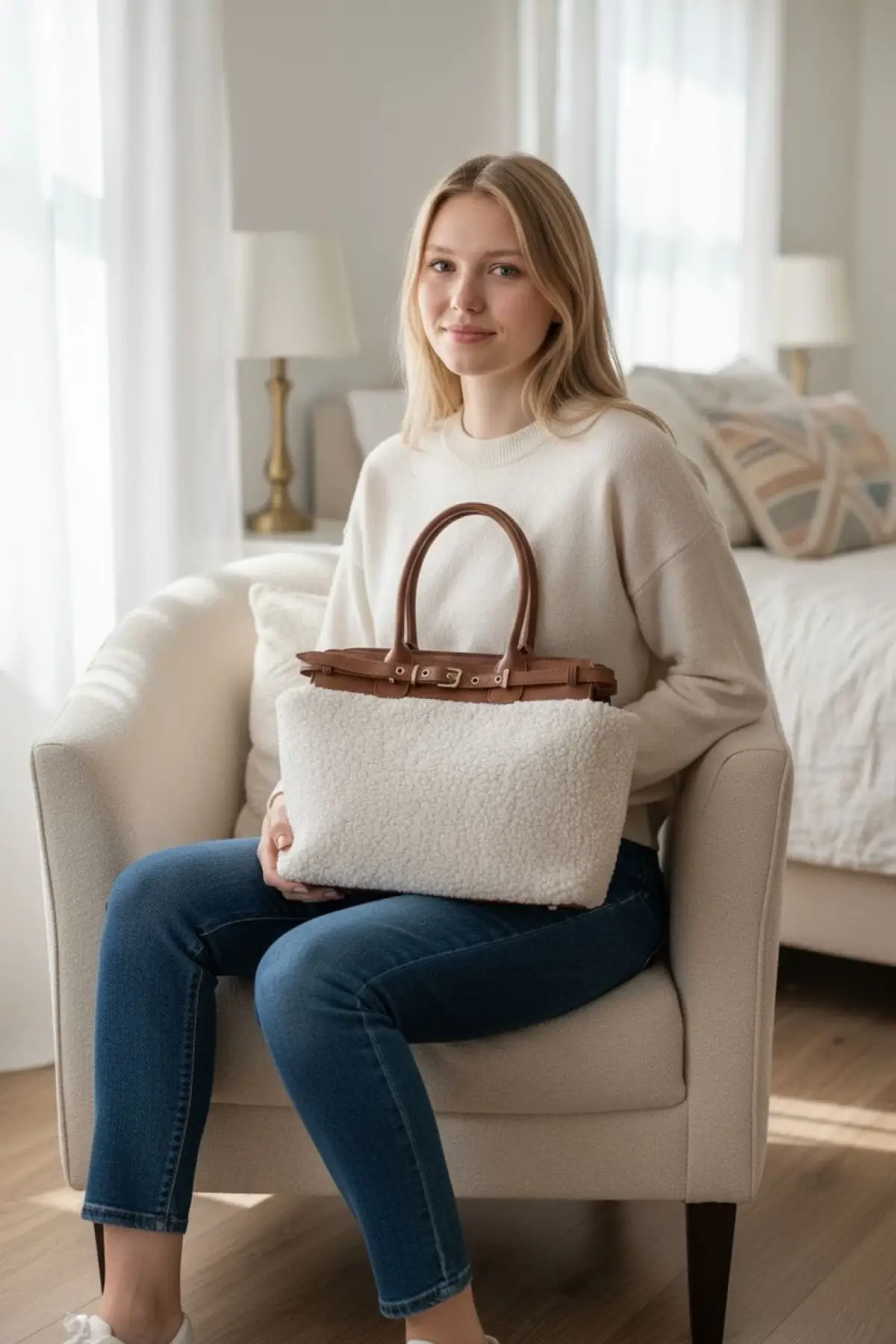 Liya Acı Kahve Süet Örgü Desen Shopper Kadın Omuz Çantası