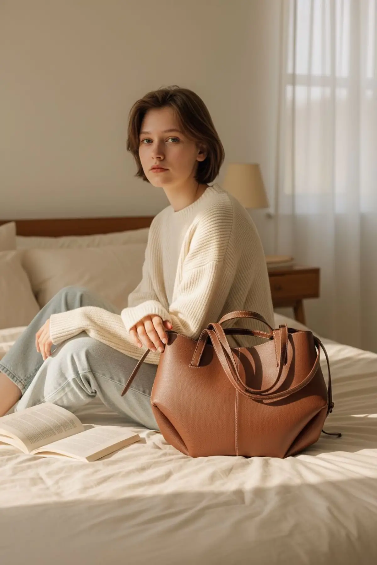 Nerasy Taba Süet Vintage Tasarım Kadın Omuz Çantası