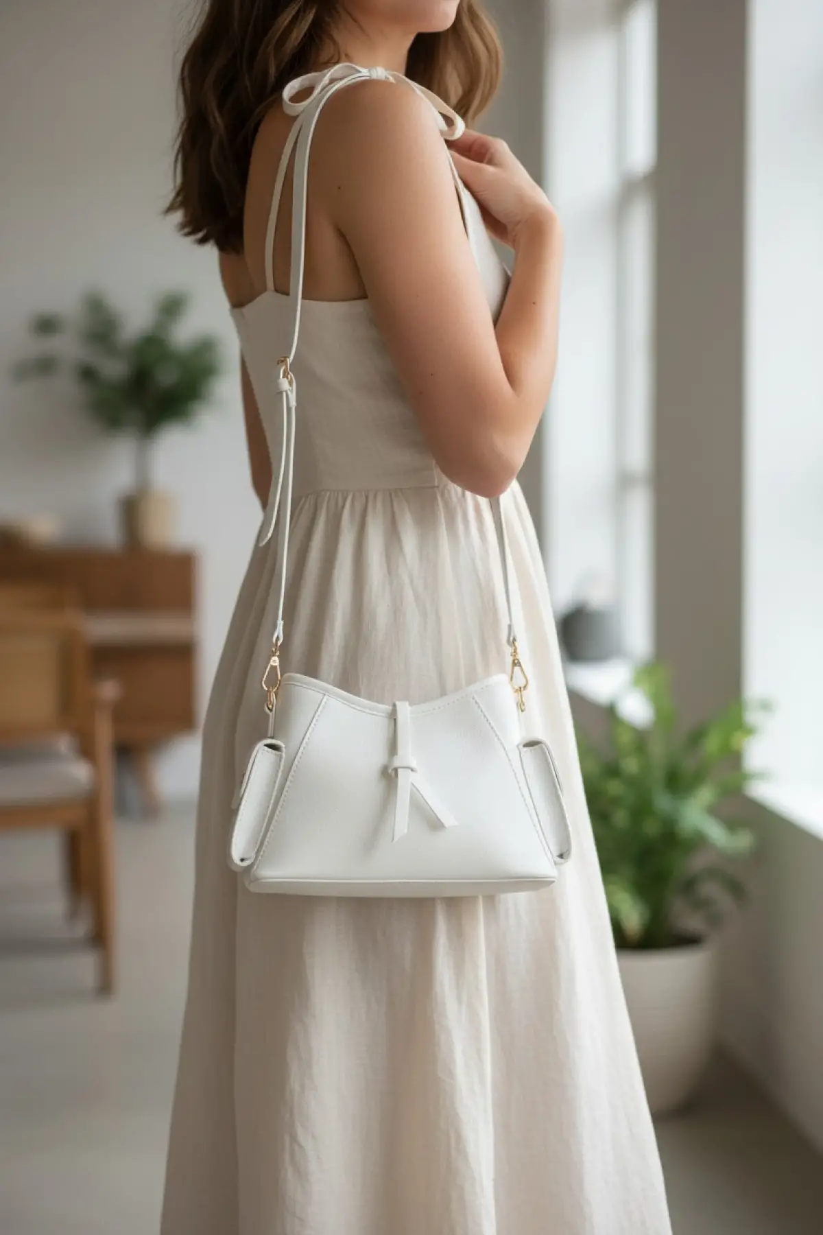 Enyola Beyaz Yandan Cepli Ayarlanabilir Askılı Kadın Omuz Çantası – Glemix