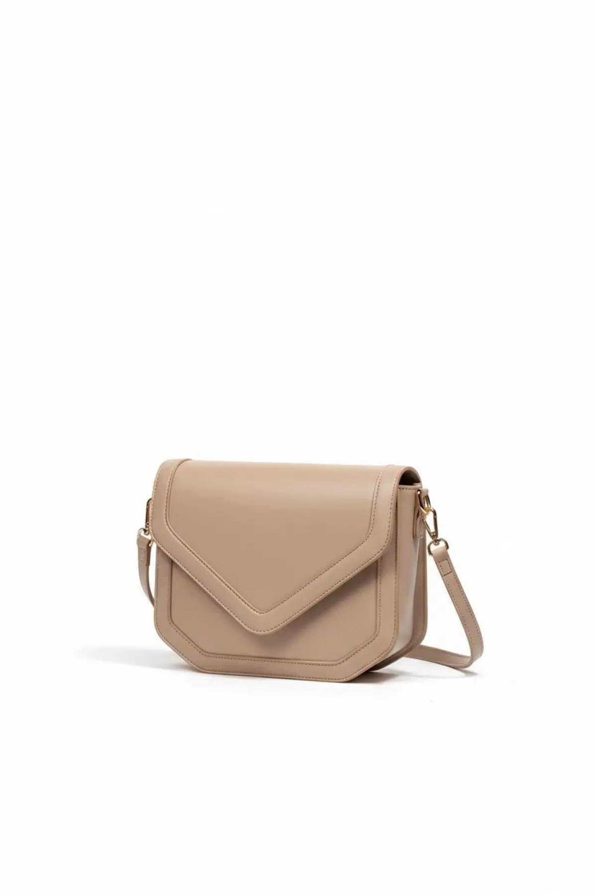 Touch Geometrik Kapaklı Mıknatıs Kapamalı Ayarlanabilir Askılı Krem Cilt Trend Kadın Omuz Çantası