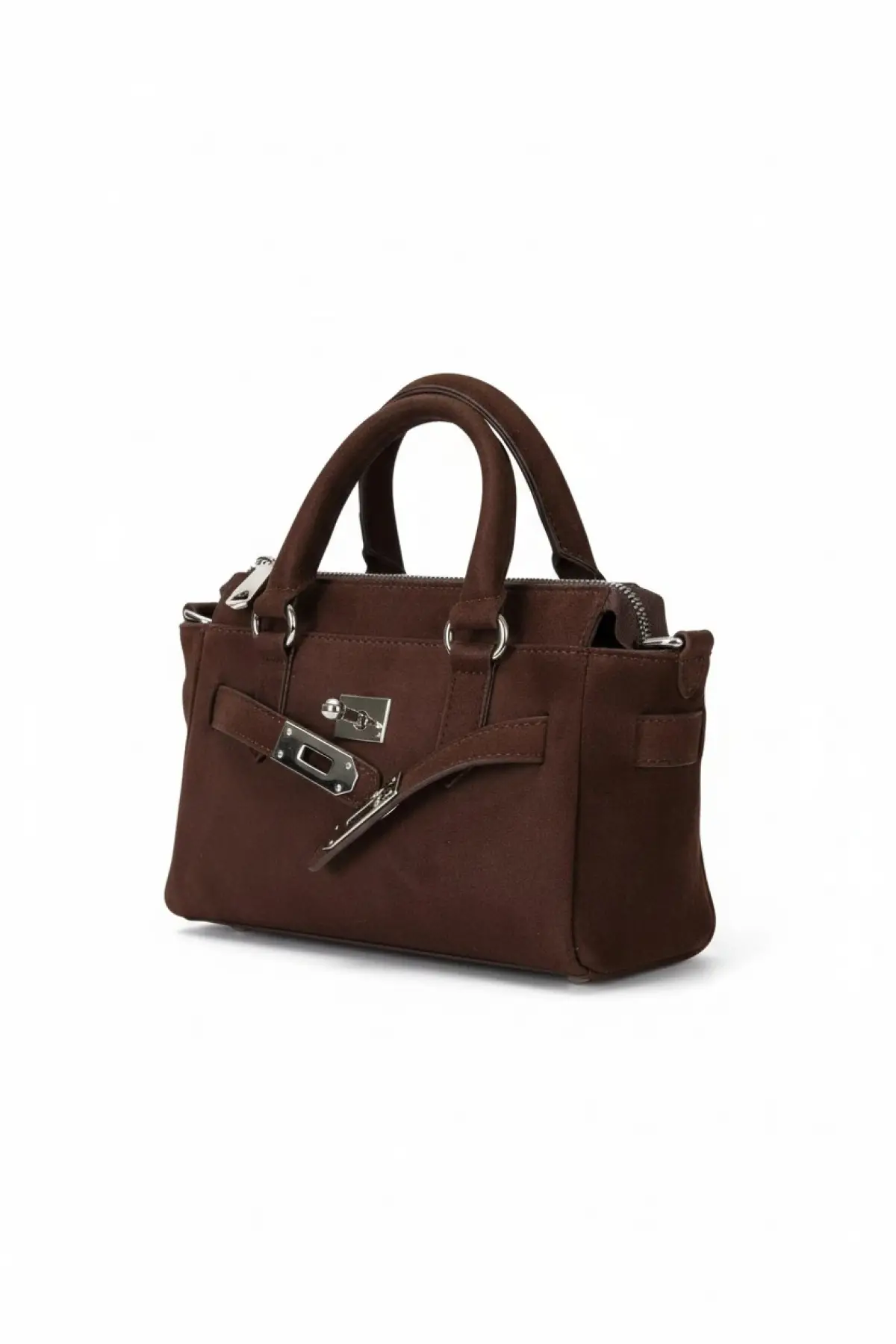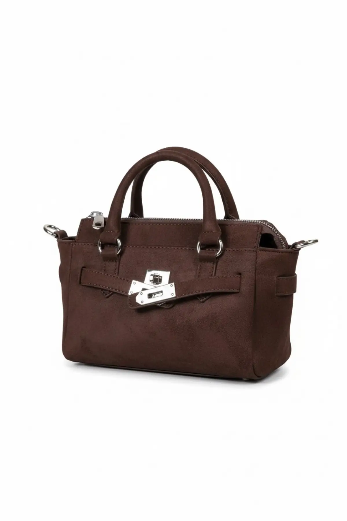 Harmony Acı Kahve Süet Önden Kilit Detaylı Mini Kadın El Kol Ve Omuz Çantası