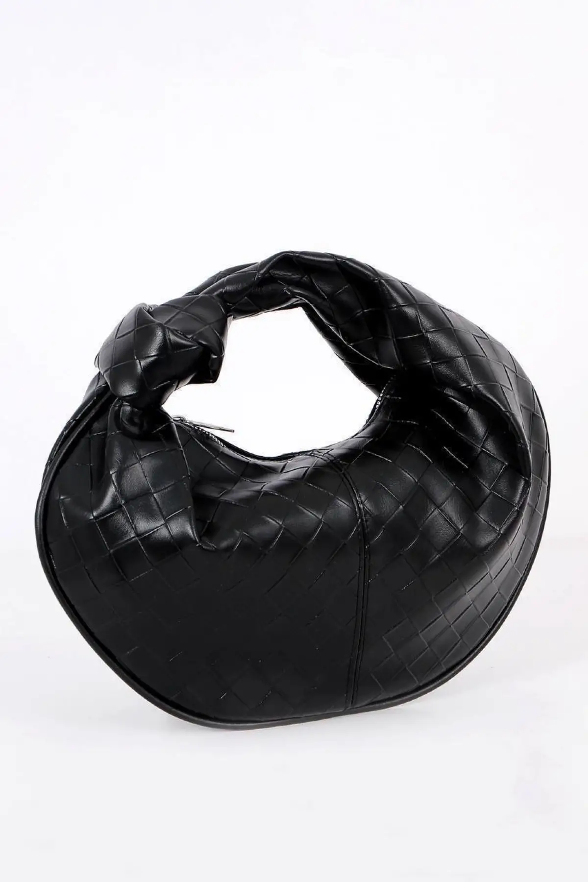 Helen Düğümlü Siyah Örgü Desen Trend Mini Kadın Bowl Bag