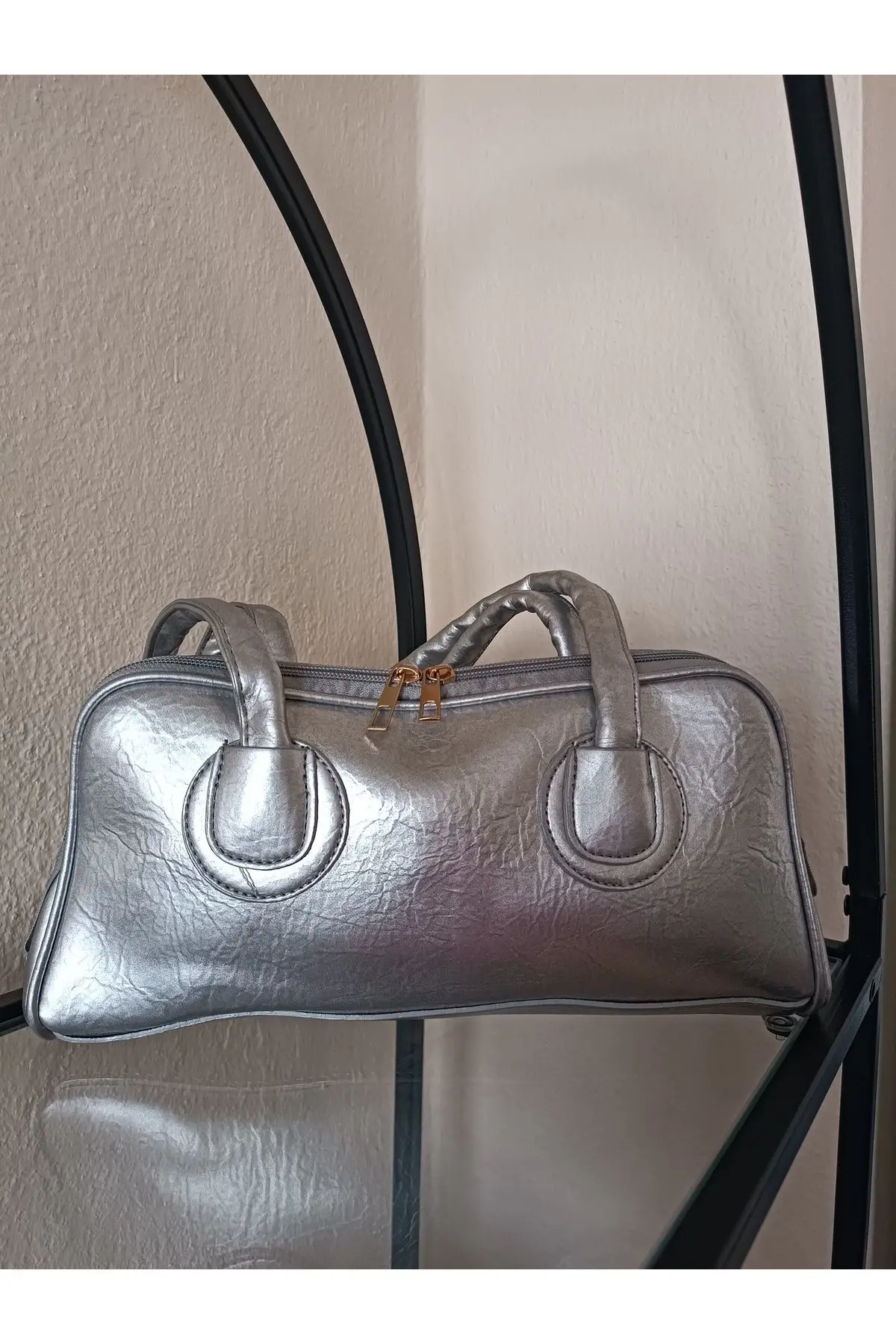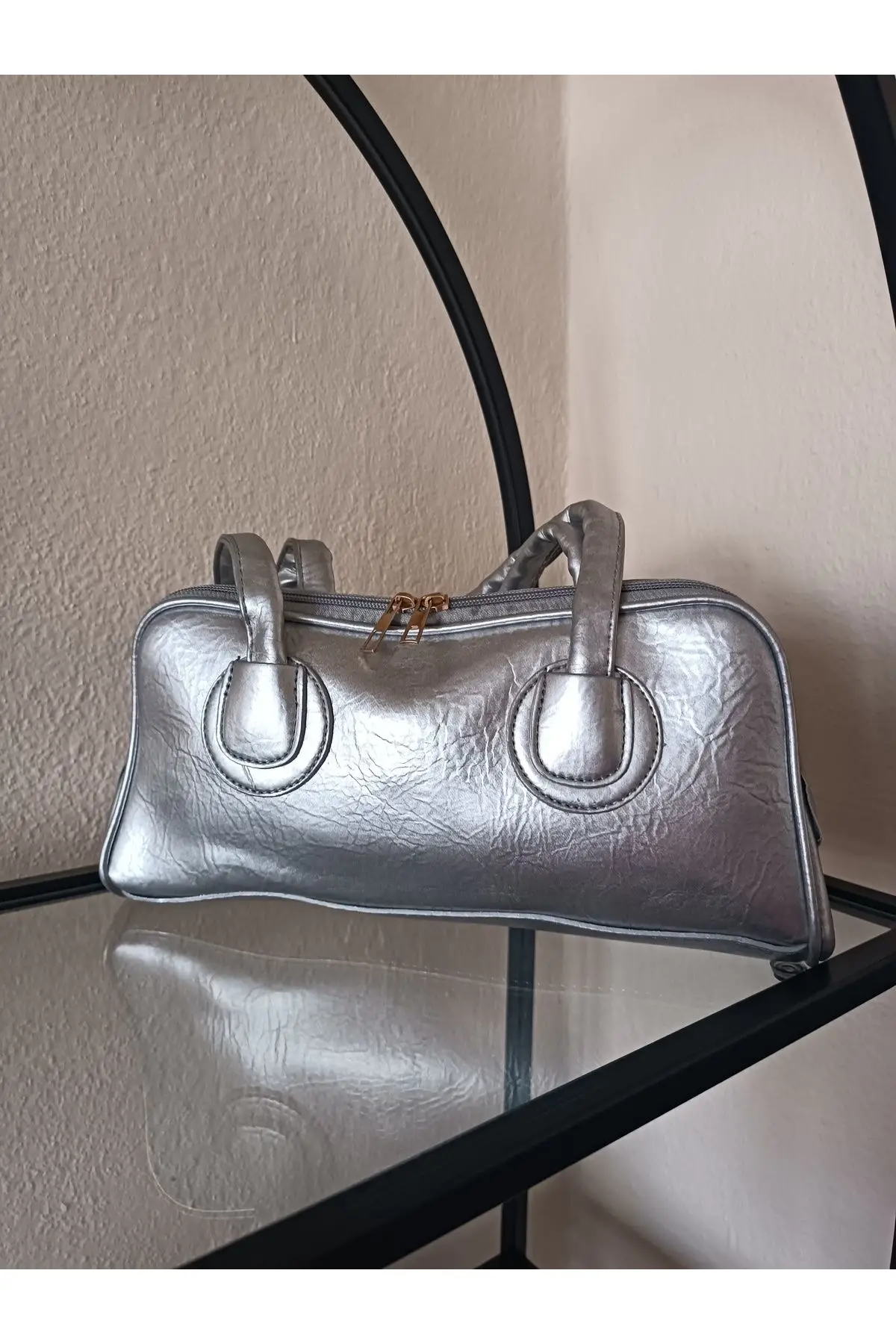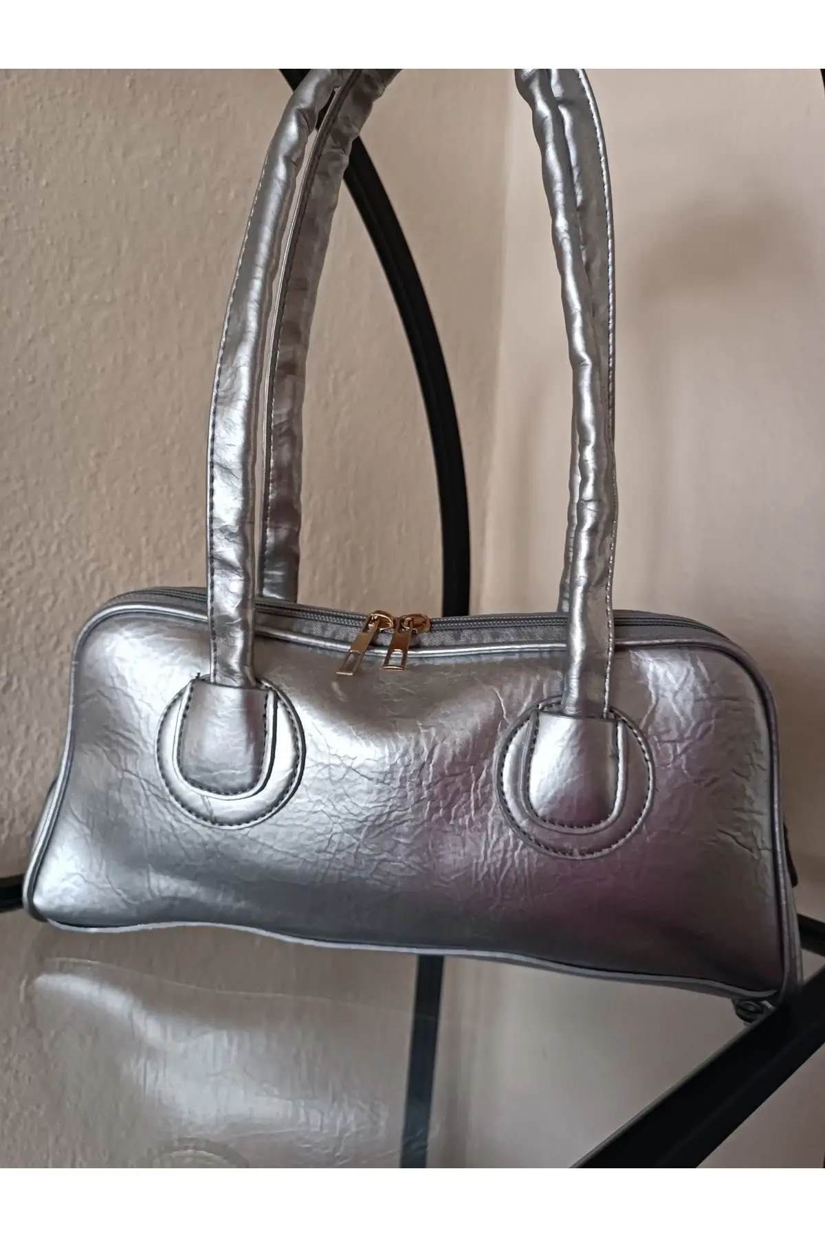 Henna Gümüş Fermuar Kapama Pinterest Model Kadın Omuz Çantası