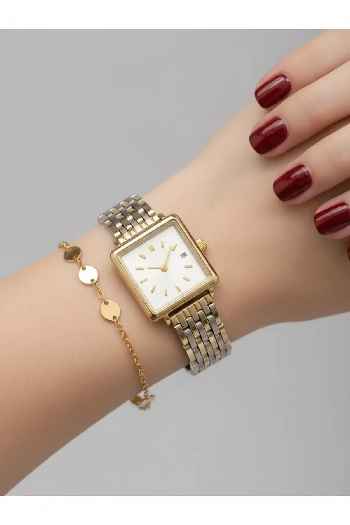 Maine Gümüş Rengi Hasır Kordonlu Minimal Kare Kadın Kol Saati