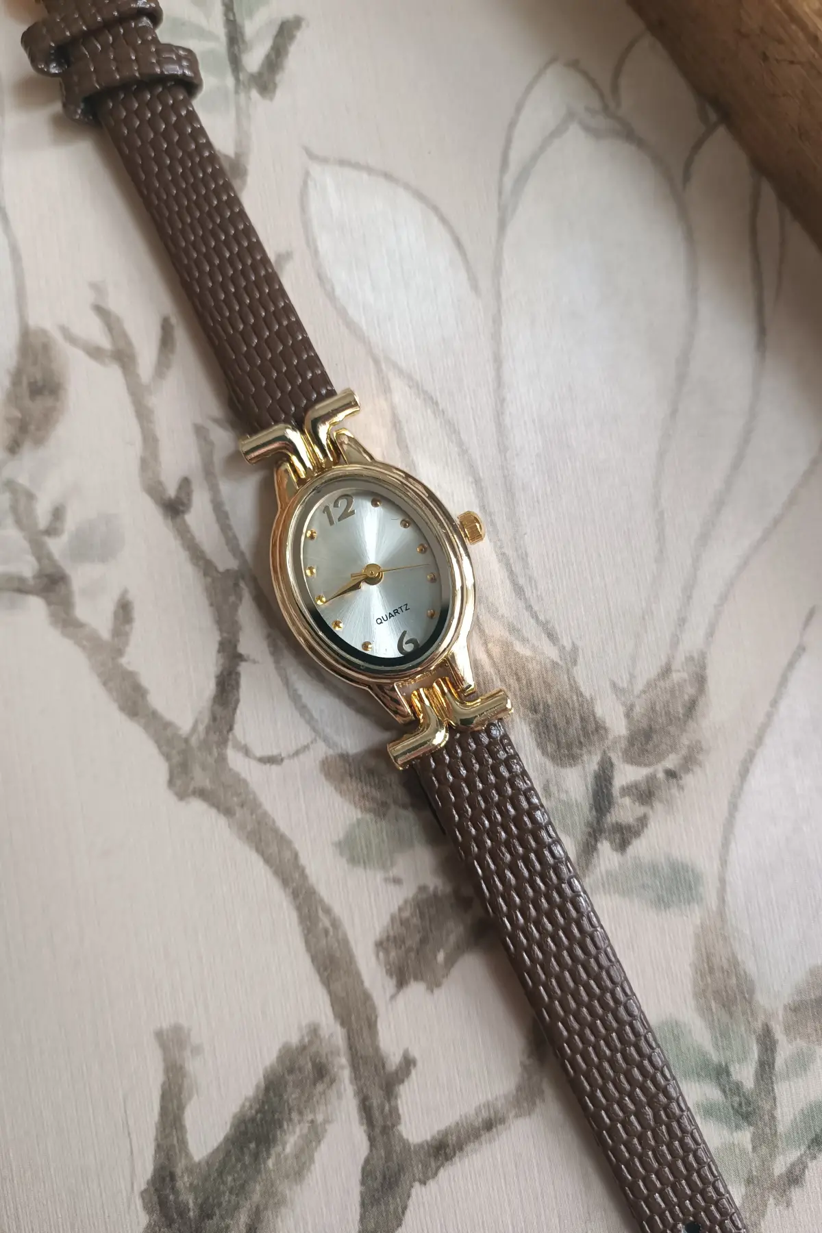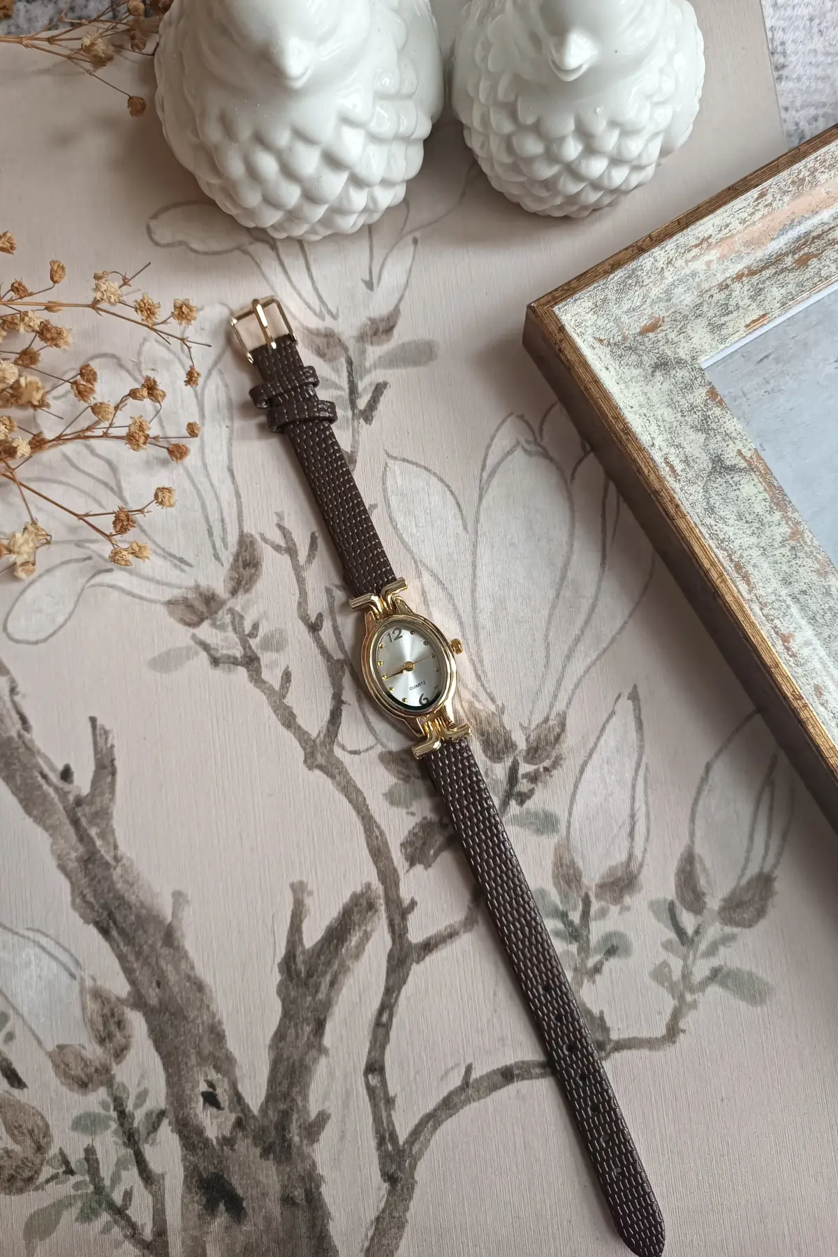Kaira Kahve Desenli Deri Beyaz Kardan Oval Minimal Kadın Kol Saati