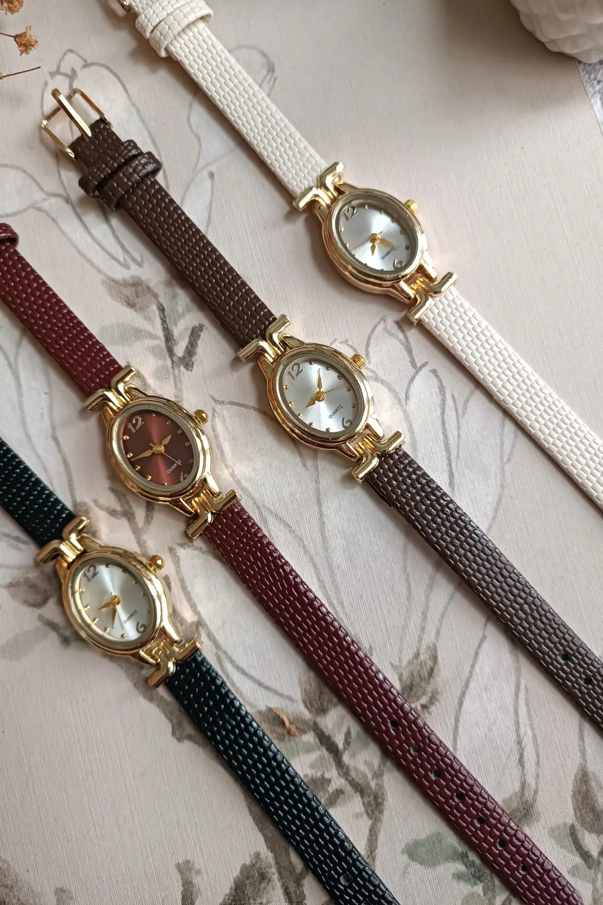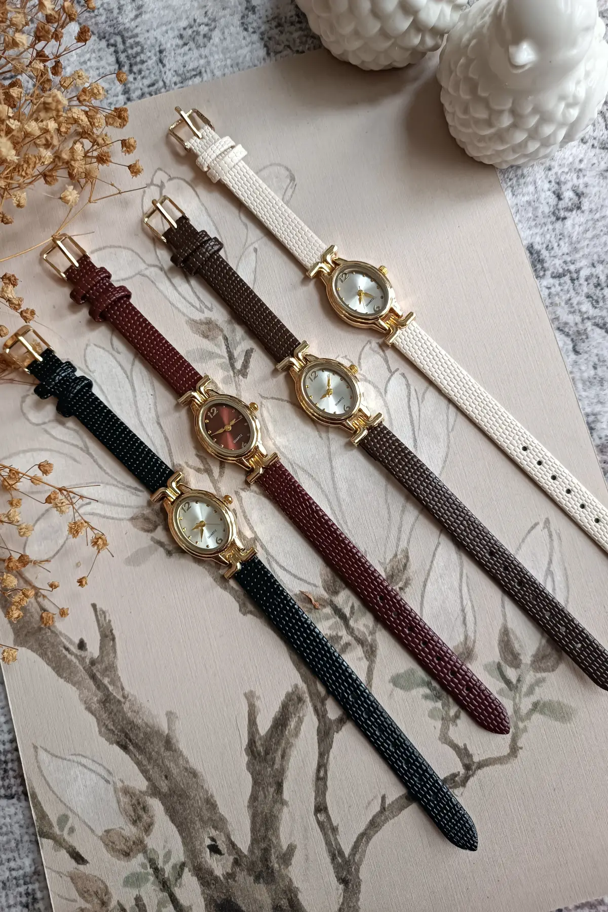 Elira Bordo Kordon Beyaz Kardan Kare Vintage Kadın Kol Saati