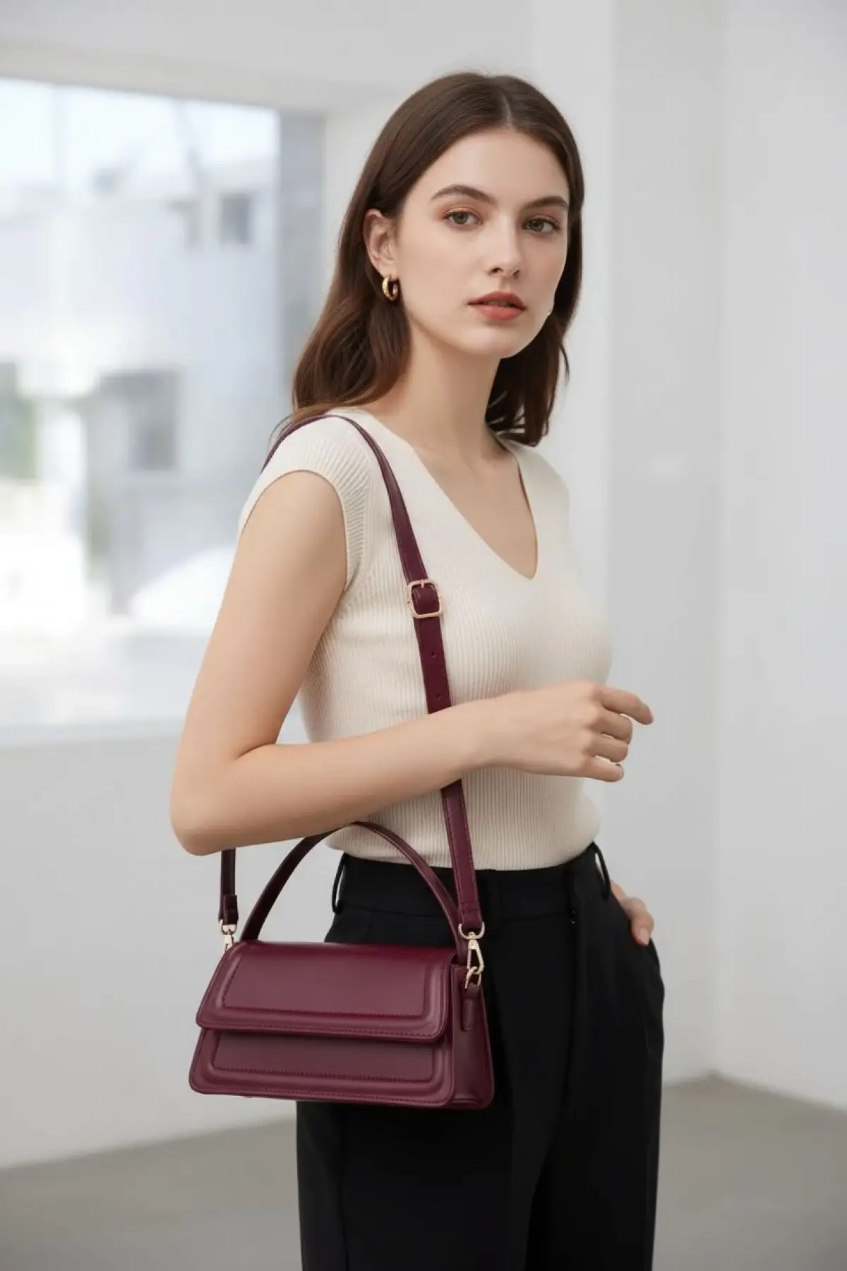 Nerasy Bordo Cilt Vintage Tasarım Kadın Omuz Çantası