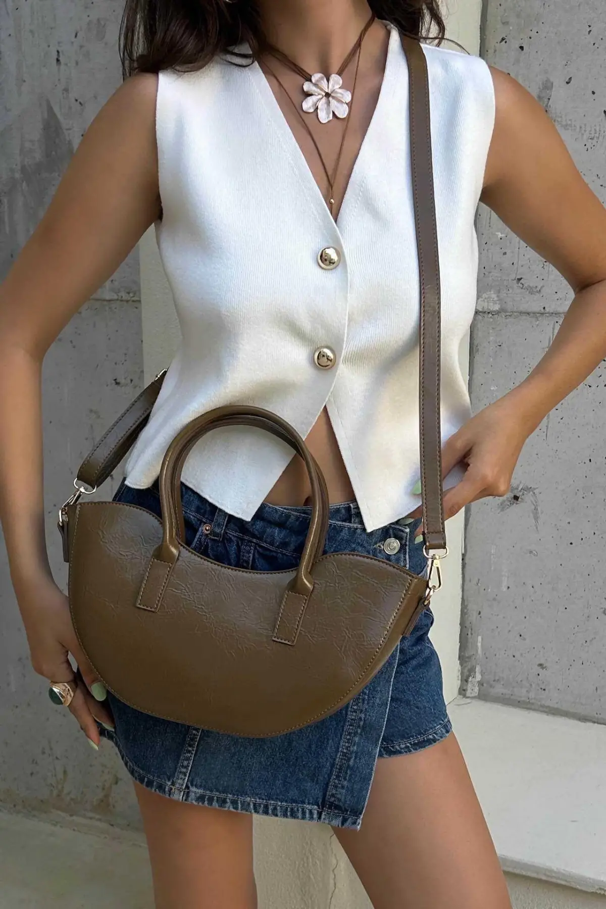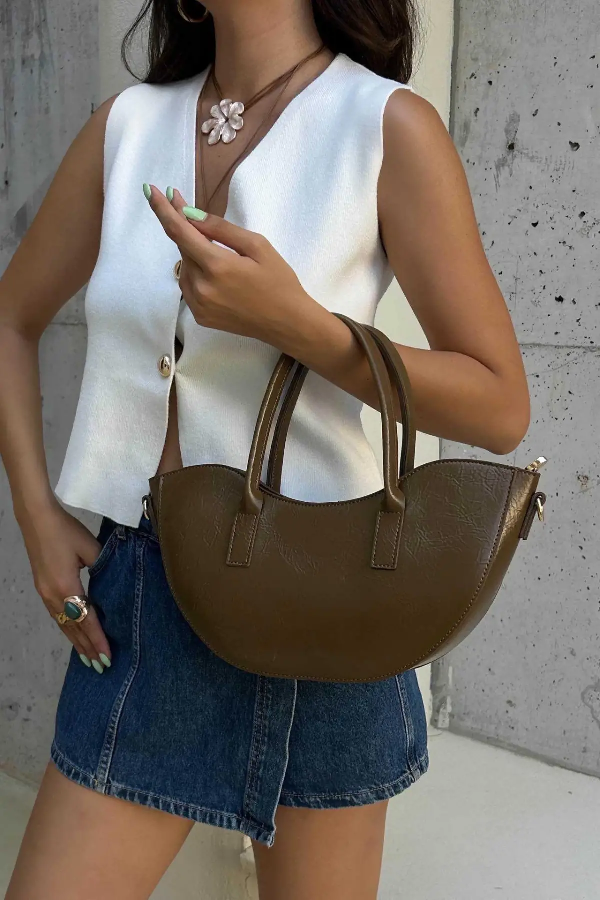 Nerasy Acı Kahve Cilt Vintage Tasarım Kadın Omuz Çantası