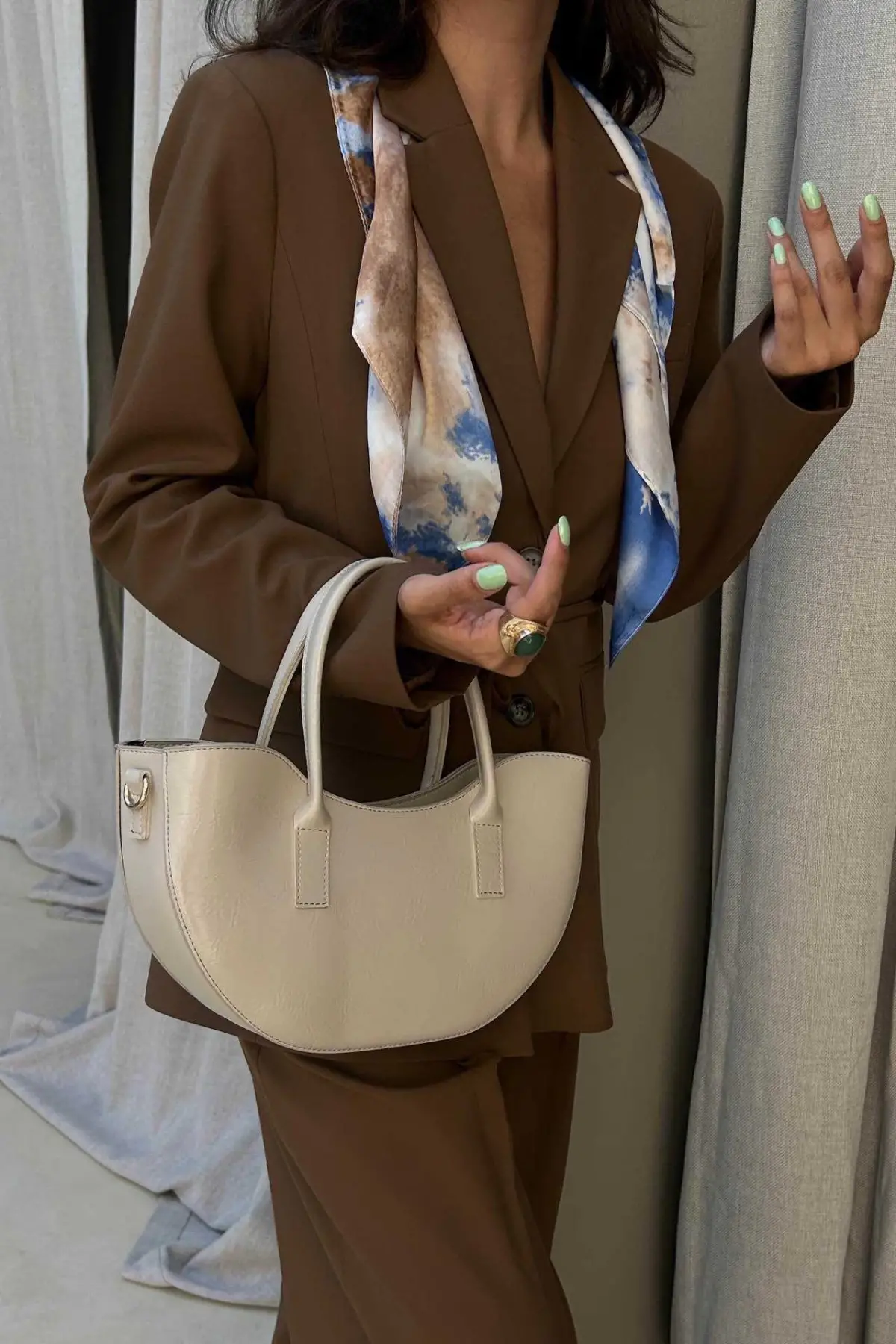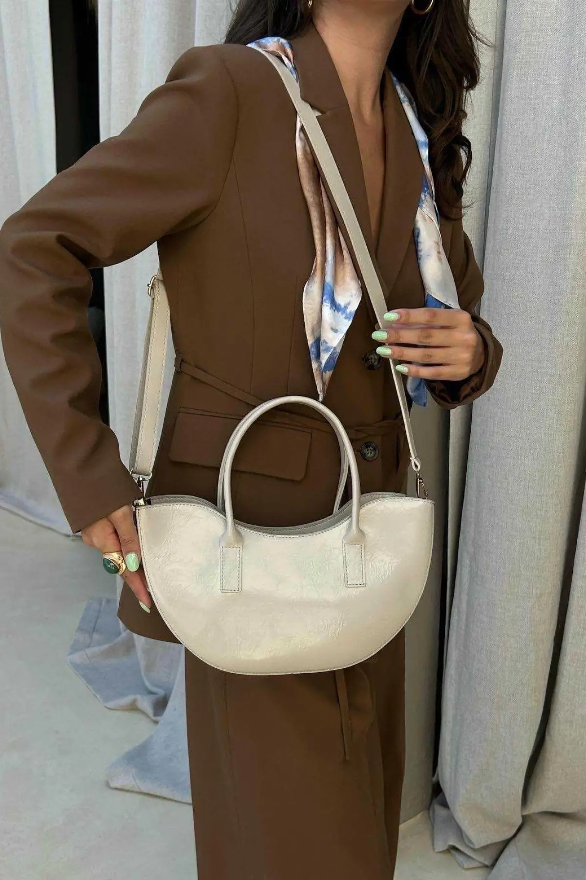 Lissea Krem Rengi Cilt Asimetrik Model Kadın El Ve Omuz Çantası