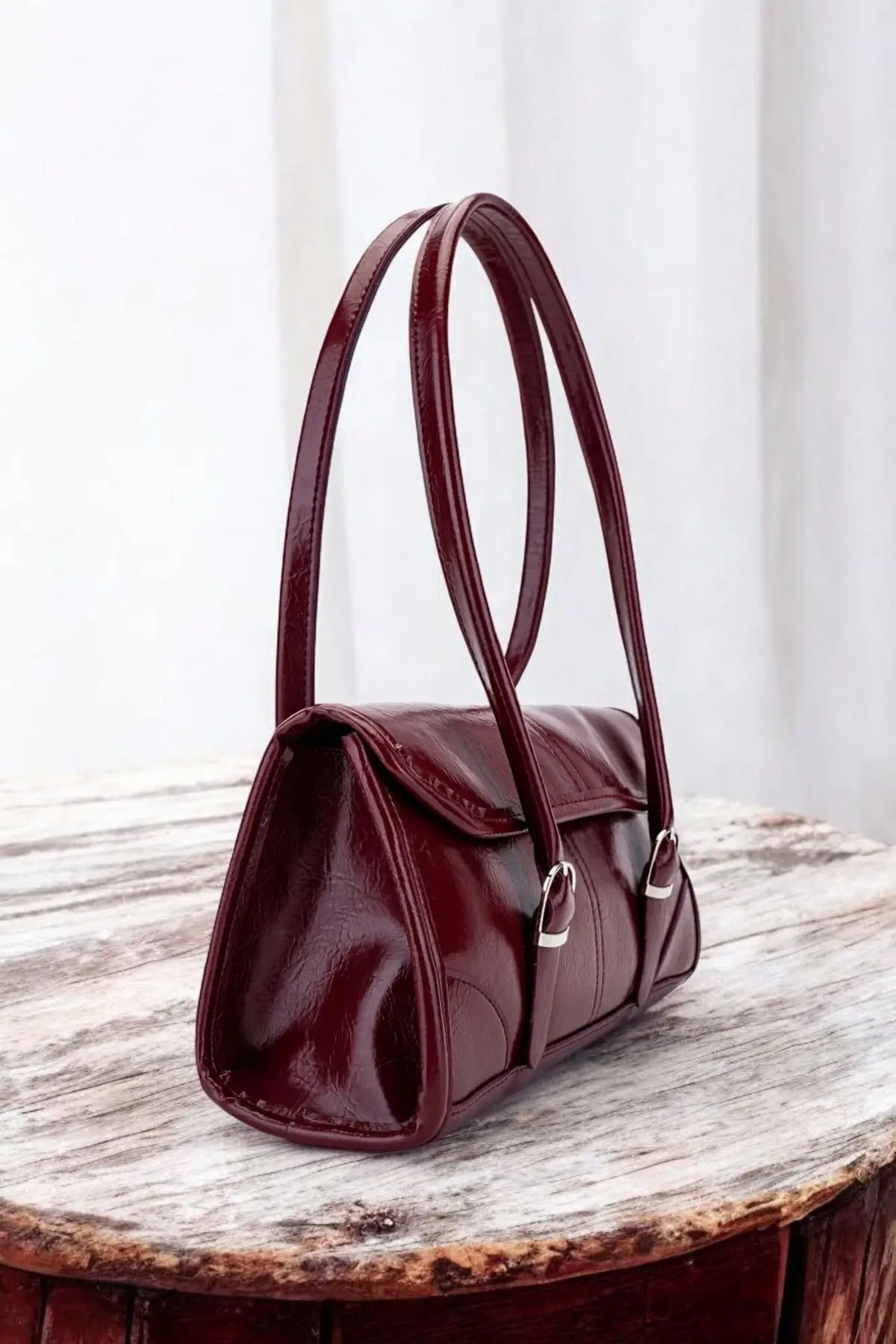 Lizbon Bordo Vintage Kadın Baget Omuz Çantası