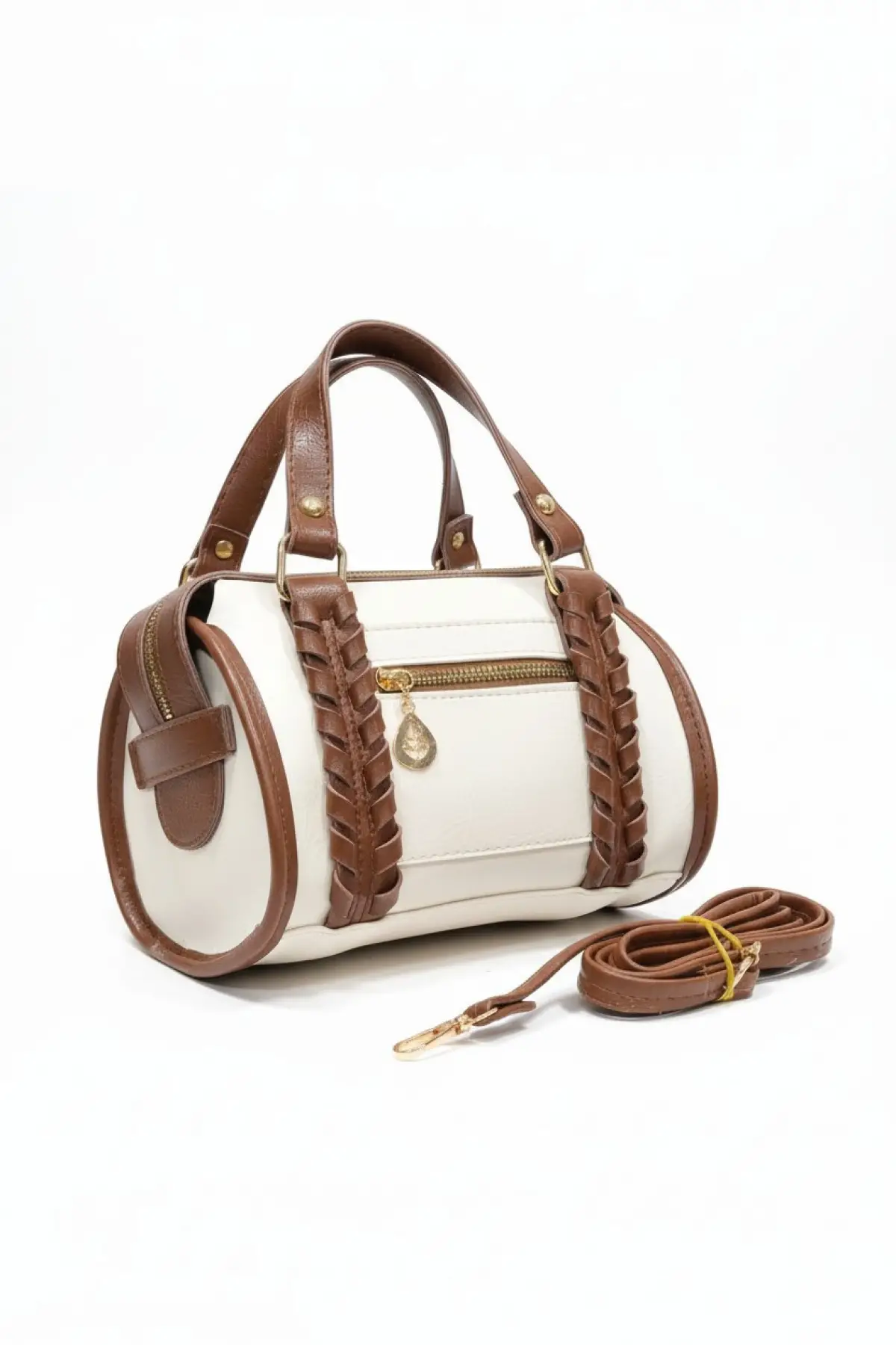 Maribel Beyaz D Model Trok Zımba Detaylı Kadın El Ve Omuz Çantası