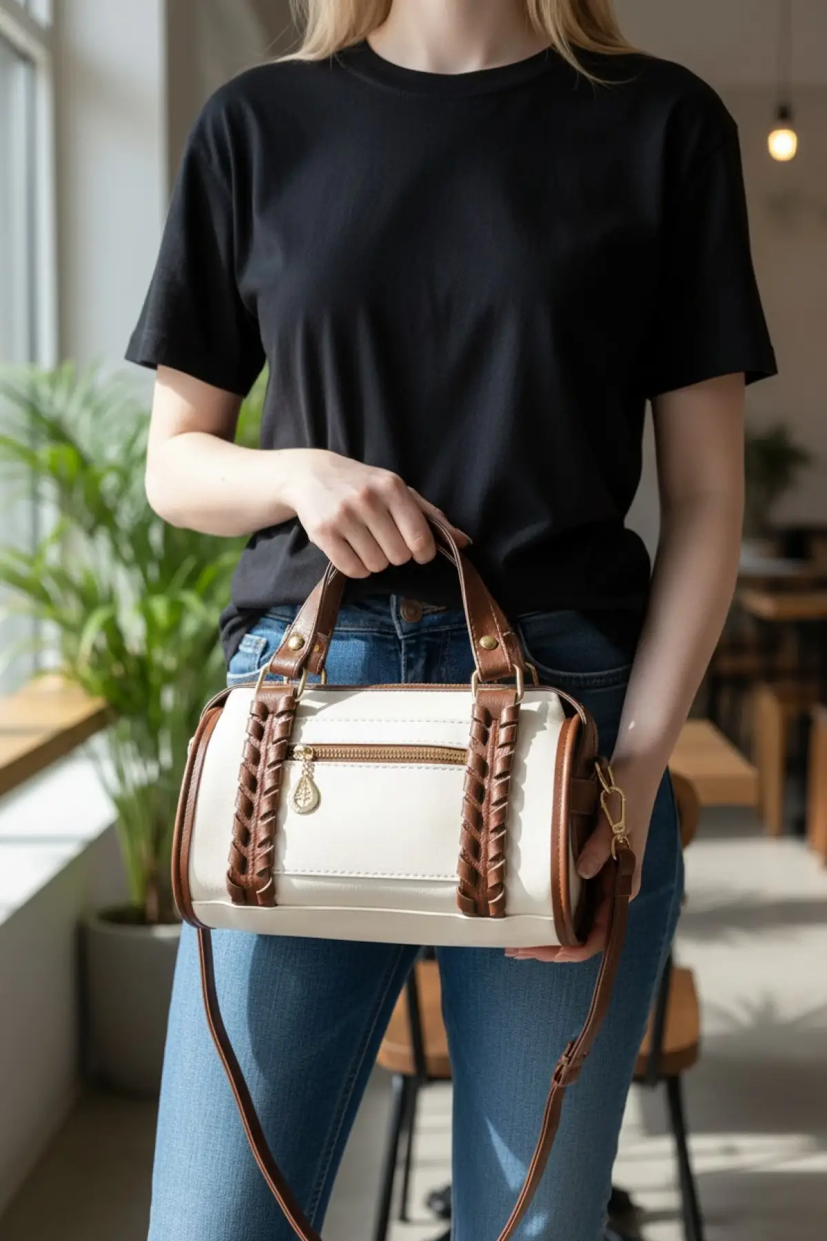 Melora Krem Vegan Deri Düğüm Detaylı Kadın El Ve Omuz Çantası
