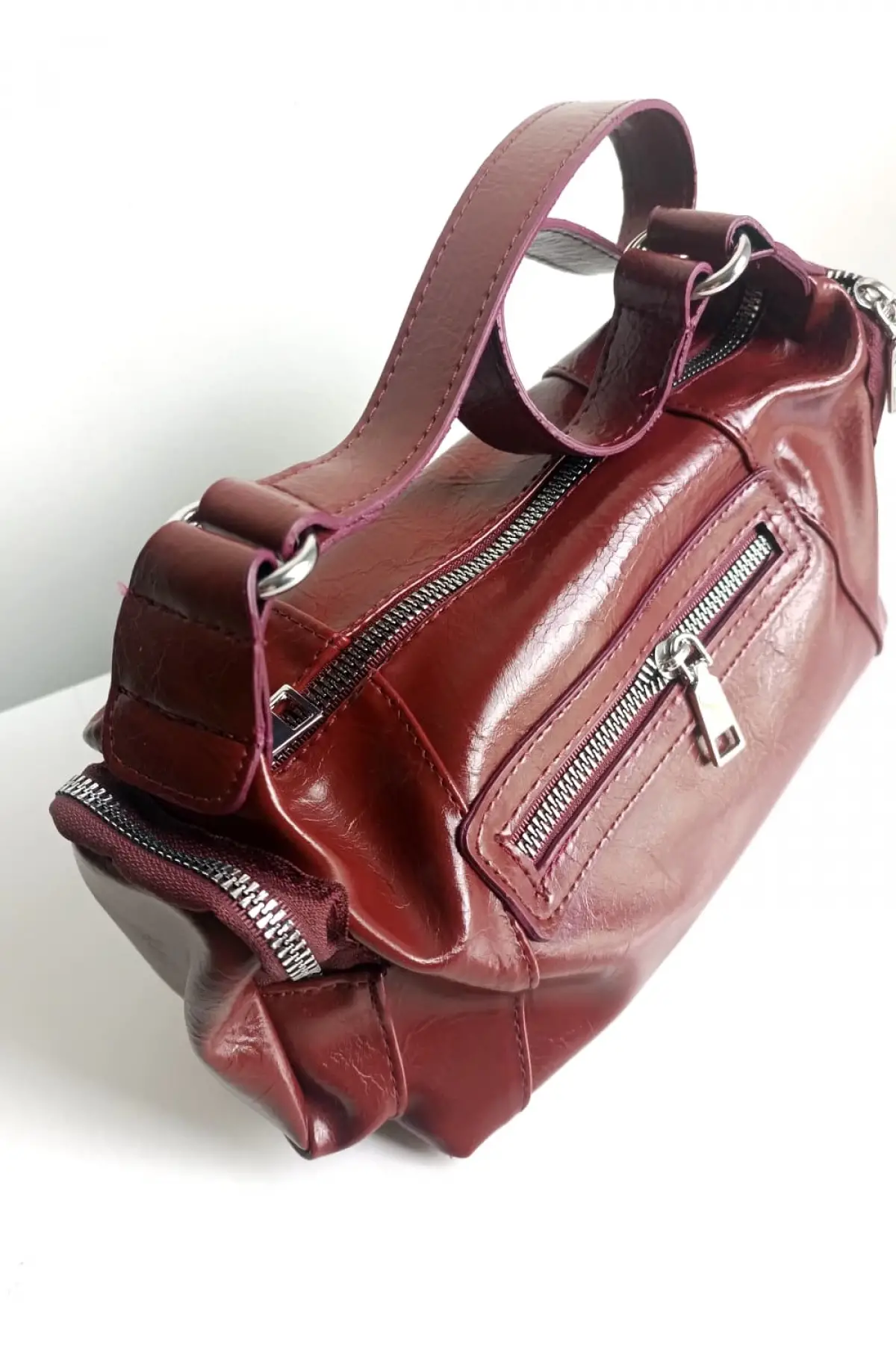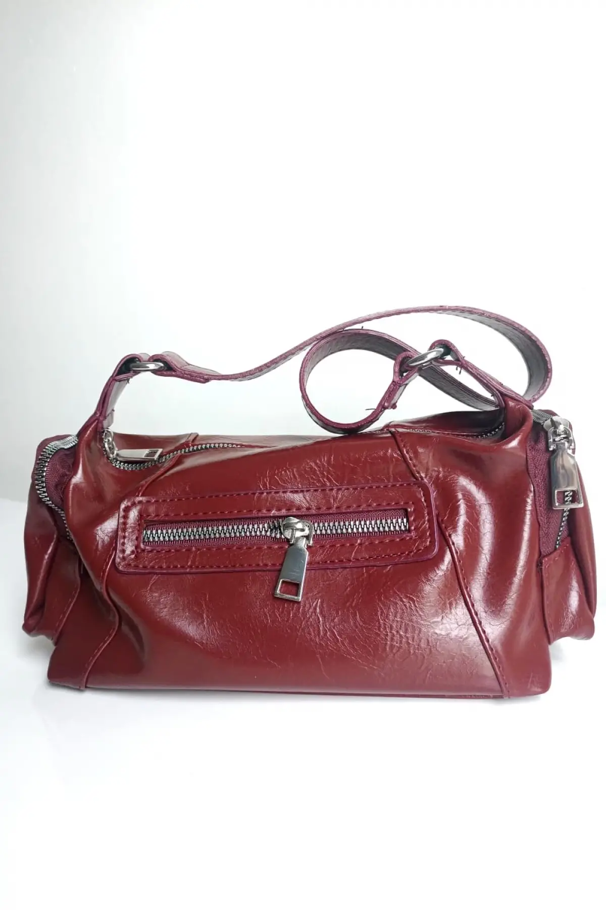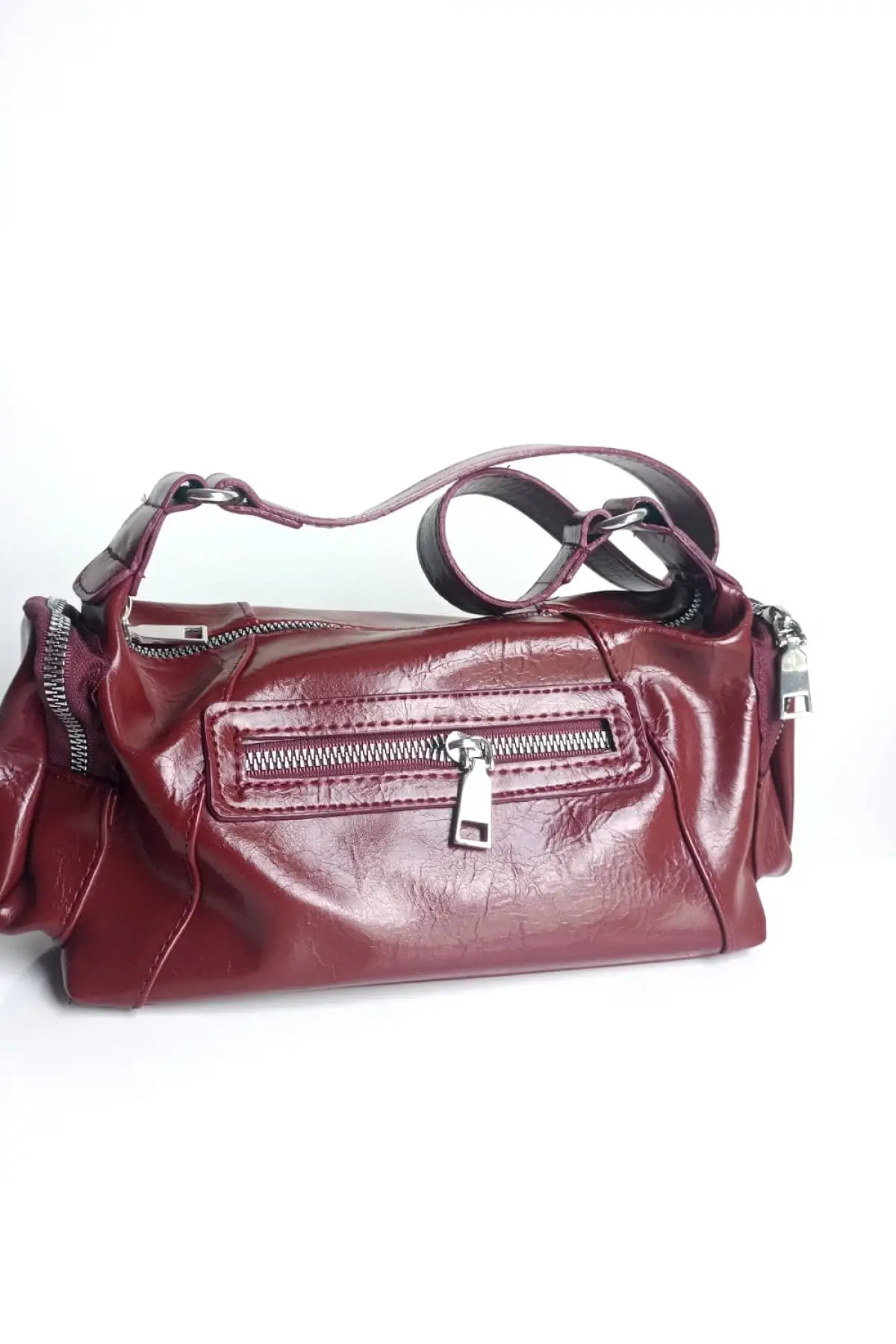 Luniva Bordo Cilt Çok Cepli Mini Baget Kadın El Ve Omuz Çantası