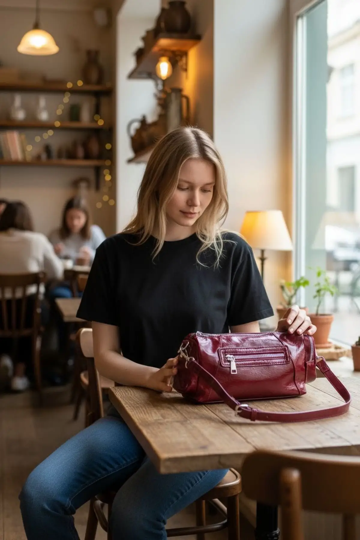 Nerasy Bordo Cilt Vintage Tasarım Kadın Omuz Çantası