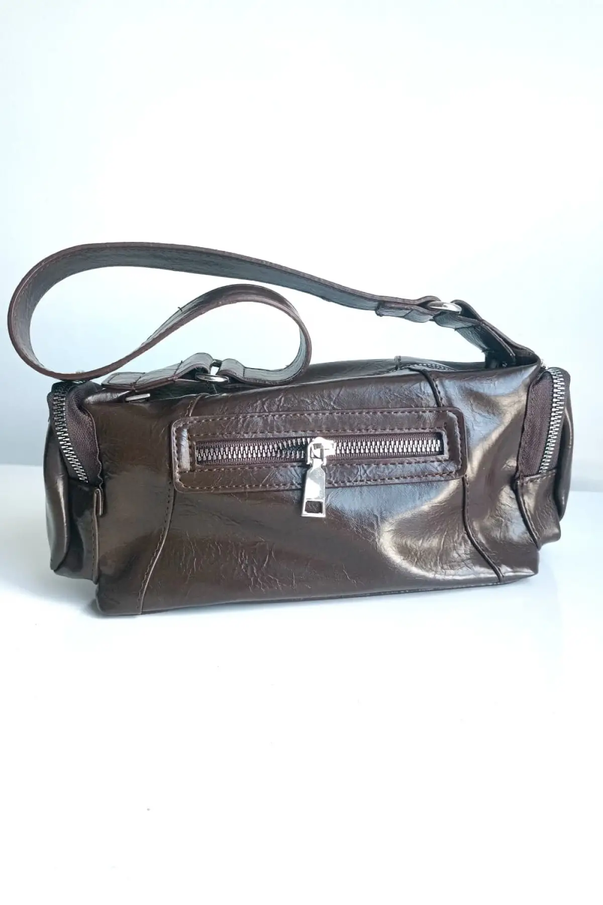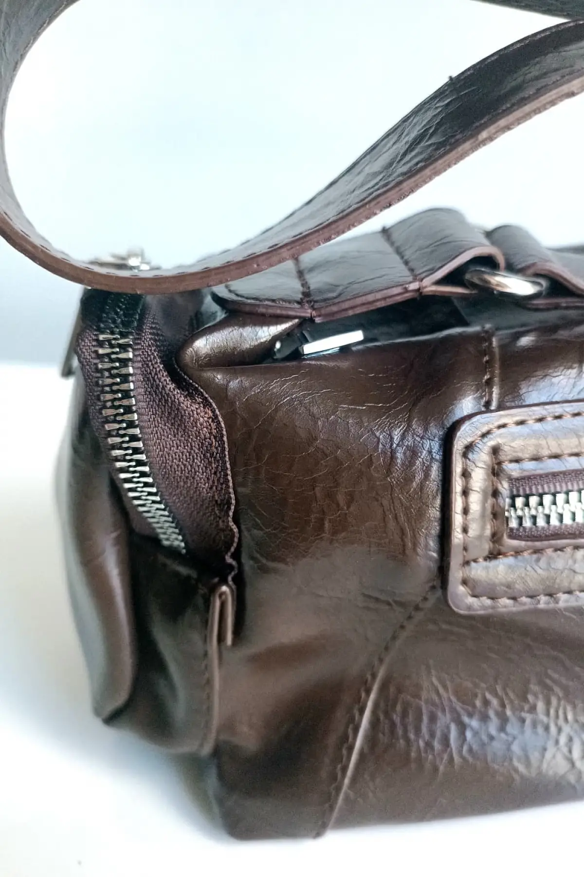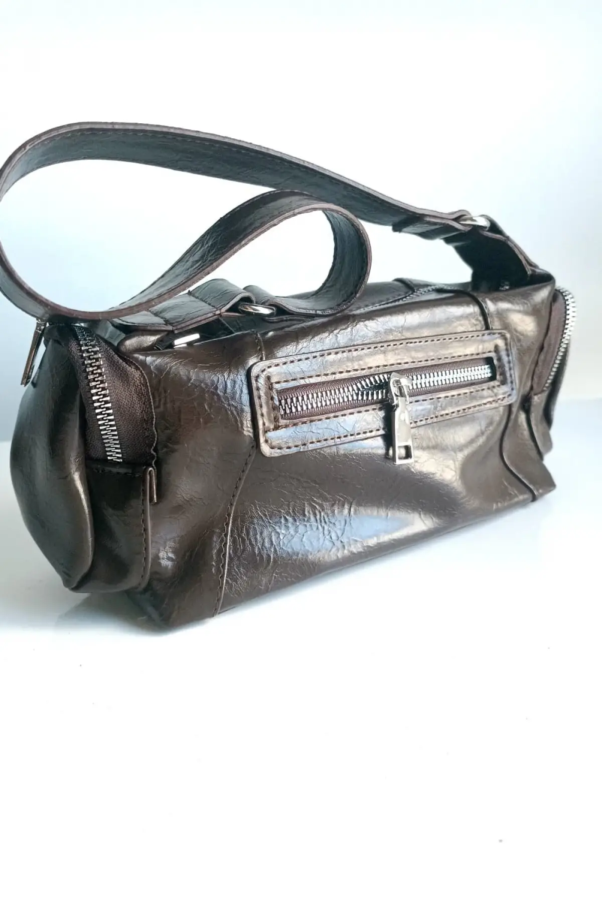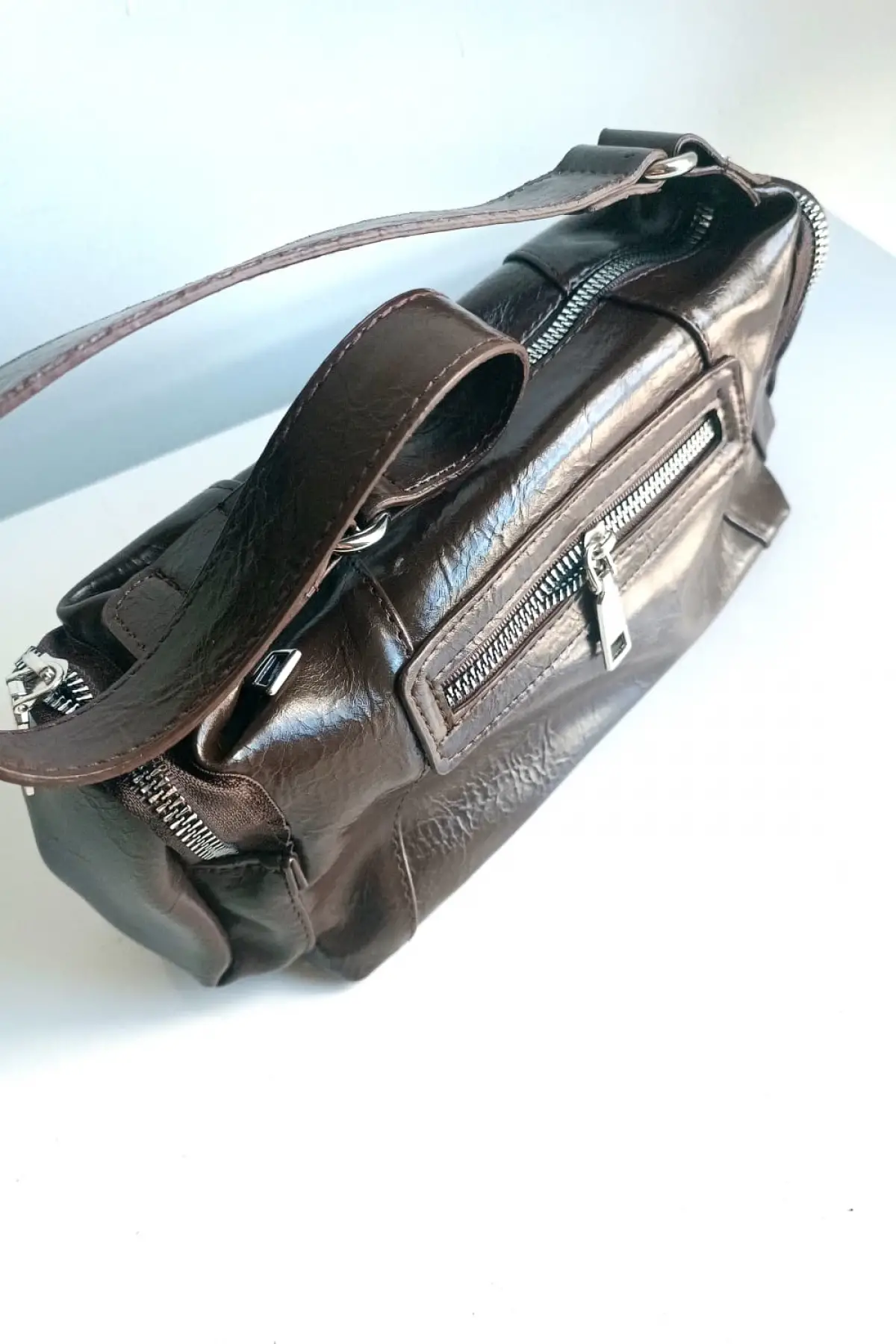 Luniva Acı Kahve Cilt Çok Cepli Mini Baget Kadın El Ve Omuz Çantası