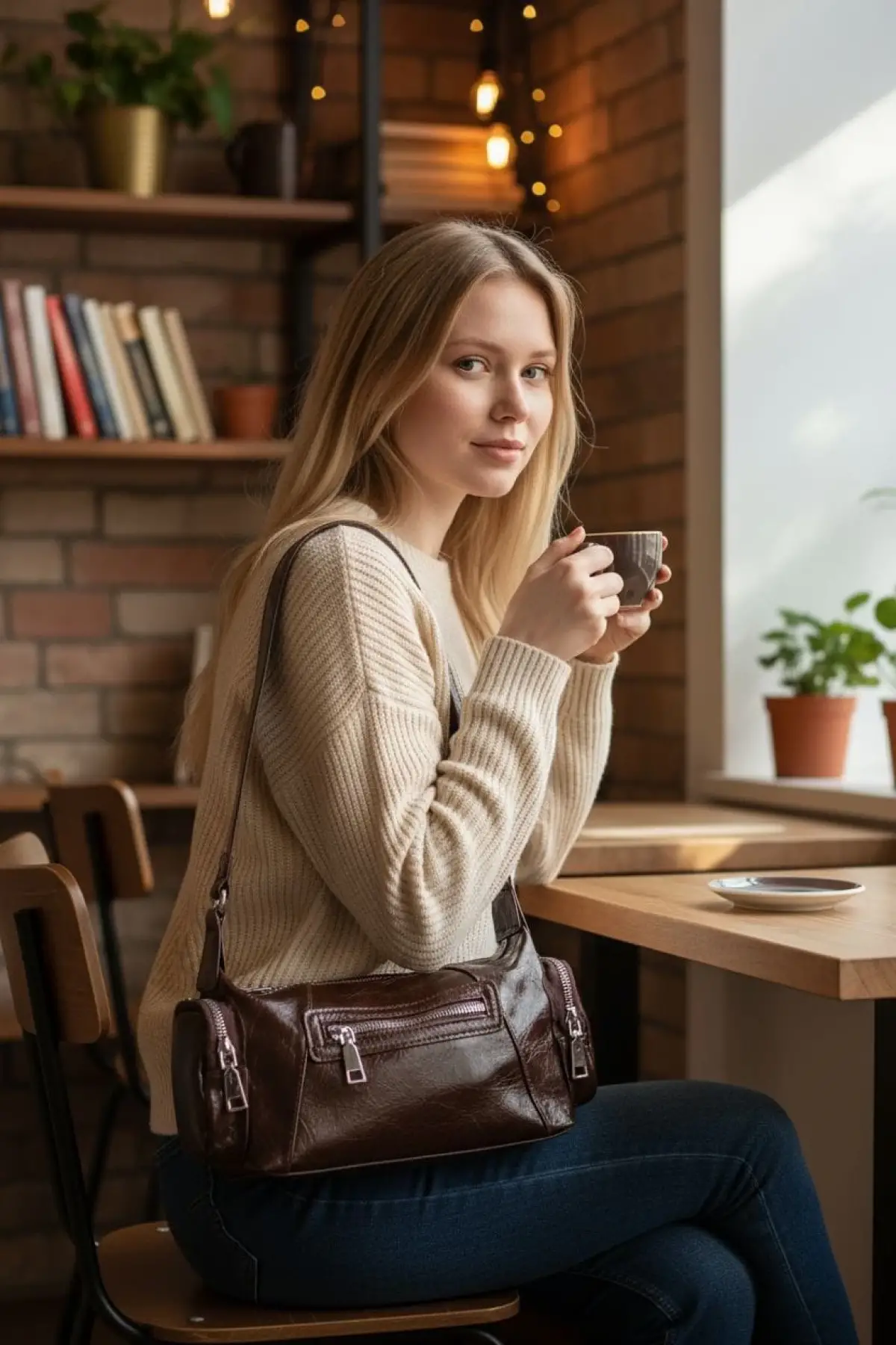 Nerasy Acı Kahve Cilt Vintage Tasarım Kadın Omuz Çantası