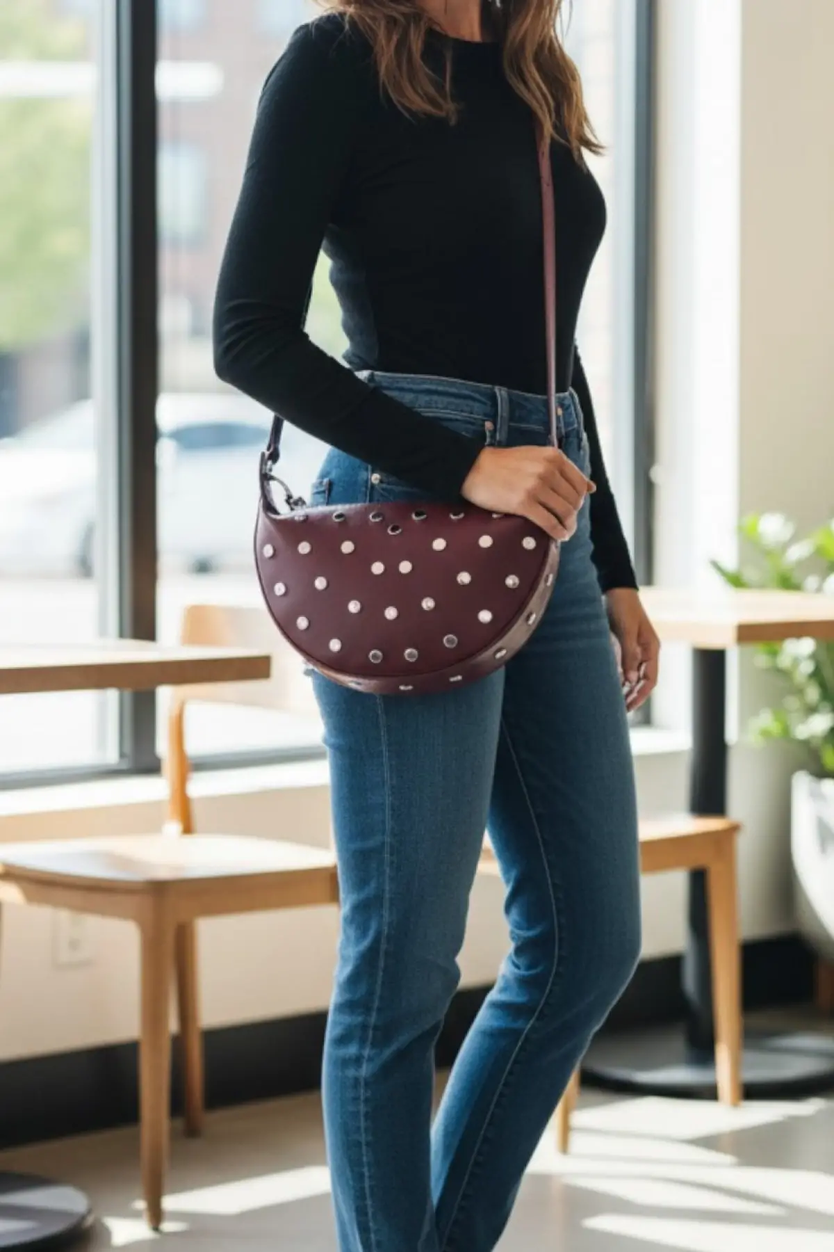 Maribel Bordo D Model Trok Zımba Detaylı Kadın El Ve Omuz Çantası