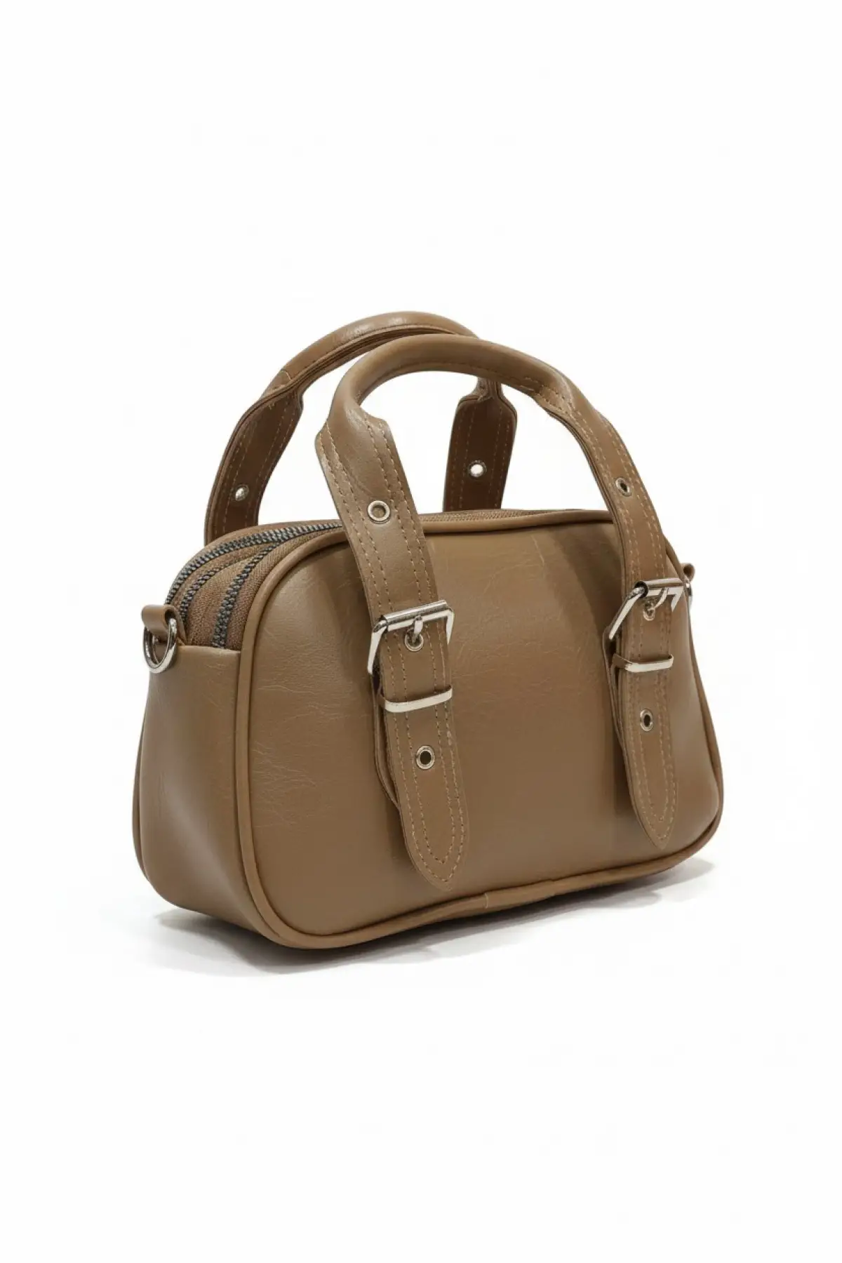 Melina Taba Vegan deri üç bölmeli fermuar kapamalı Kadın el kol ve omuz çantası