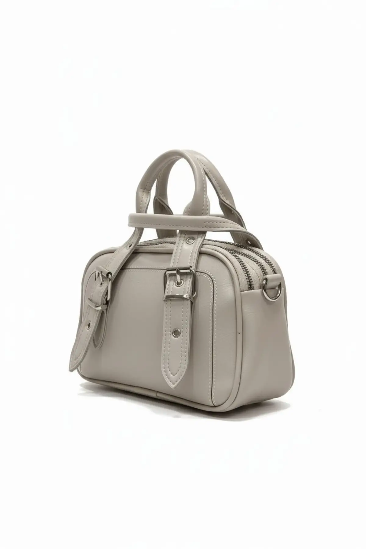 Melina Krem Vegan deri üç bölmeli fermuar kapamalı Kadın el kol ve omuz çantası