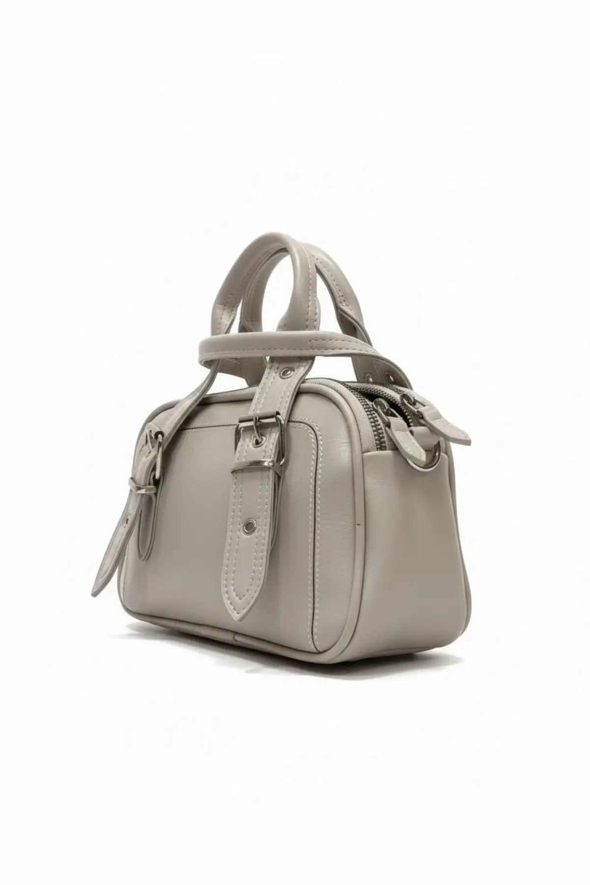 Melina Vizon Vegan deri üç bölmeli fermuar kapamalı Kadın el kol ve omuz çantası