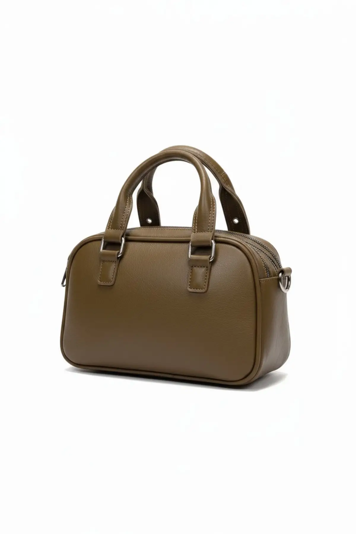 Melina Yağ Yeşili Vegan deri üç bölmeli fermuar kapamalı Kadın el kol ve omuz çantası