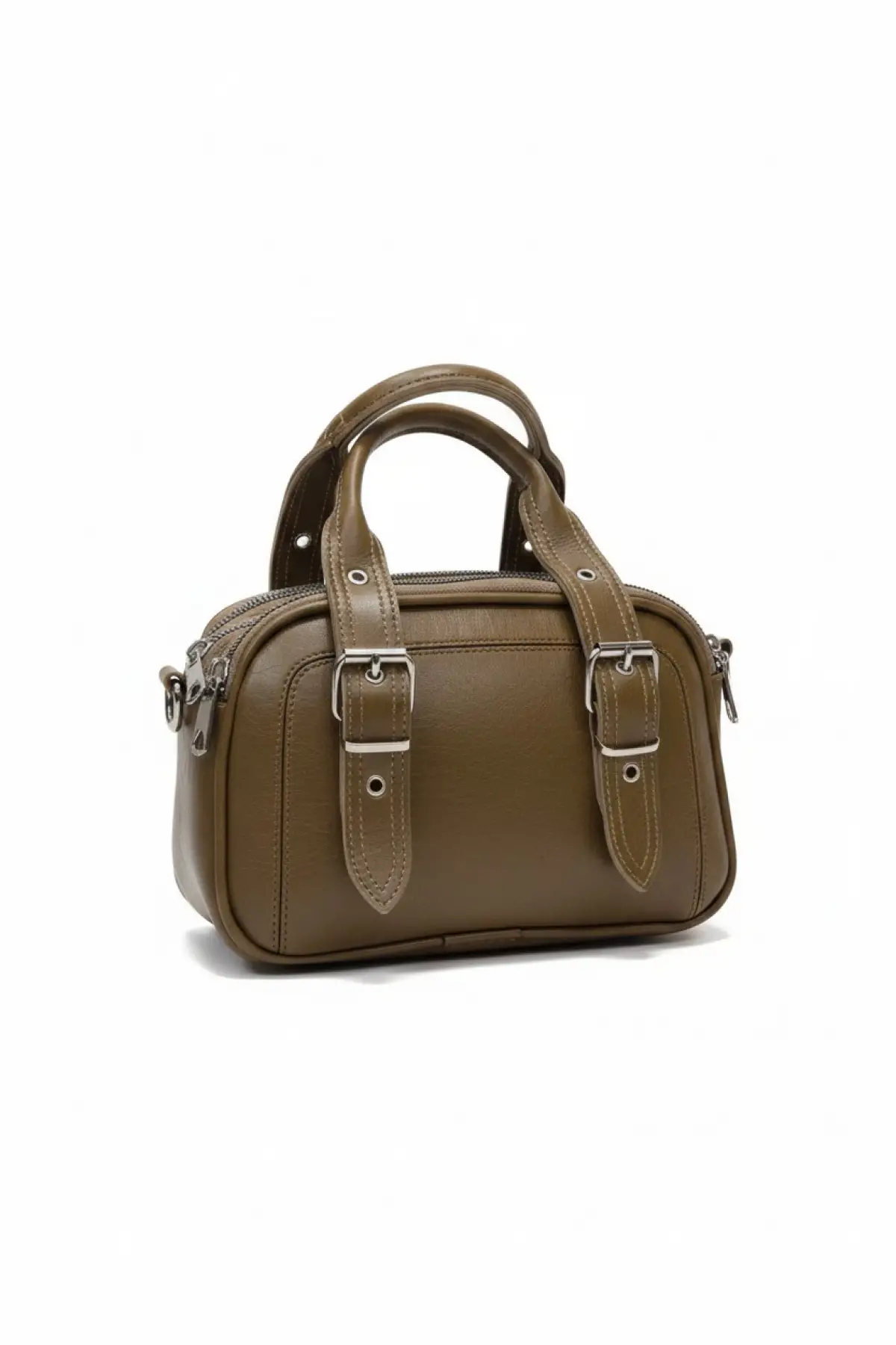 Melina Kahverengi Vegan deri üç bölmeli fermuar kapamalı Kadın el kol ve omuz çantası