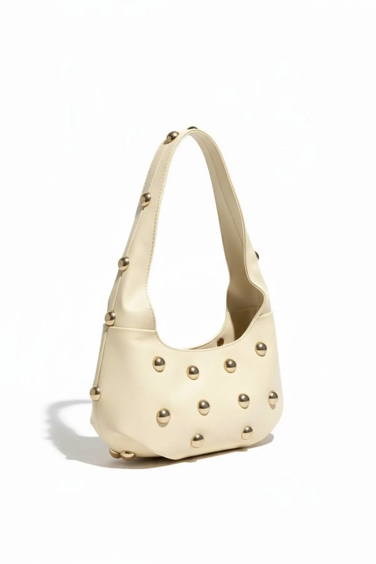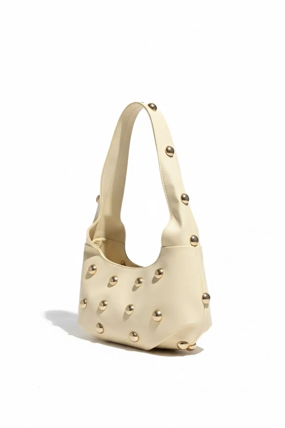 Maribel Beyaz D Model Trok Zımba Detaylı Kadın El Ve Omuz Çantası