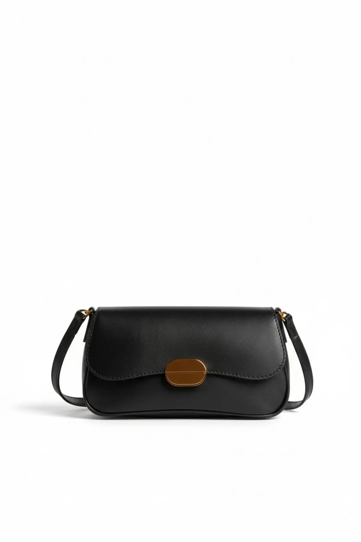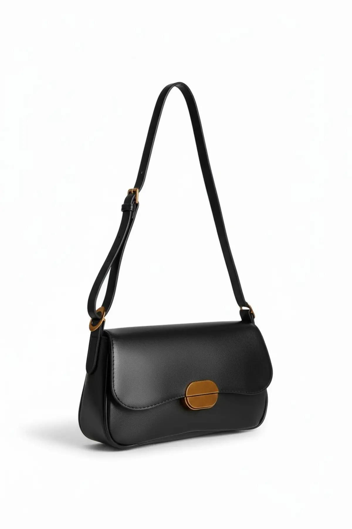 Mina Siyah Yumuşak Deri Tasarım Kilit Çift Askılı Kadın Omuz Çantası