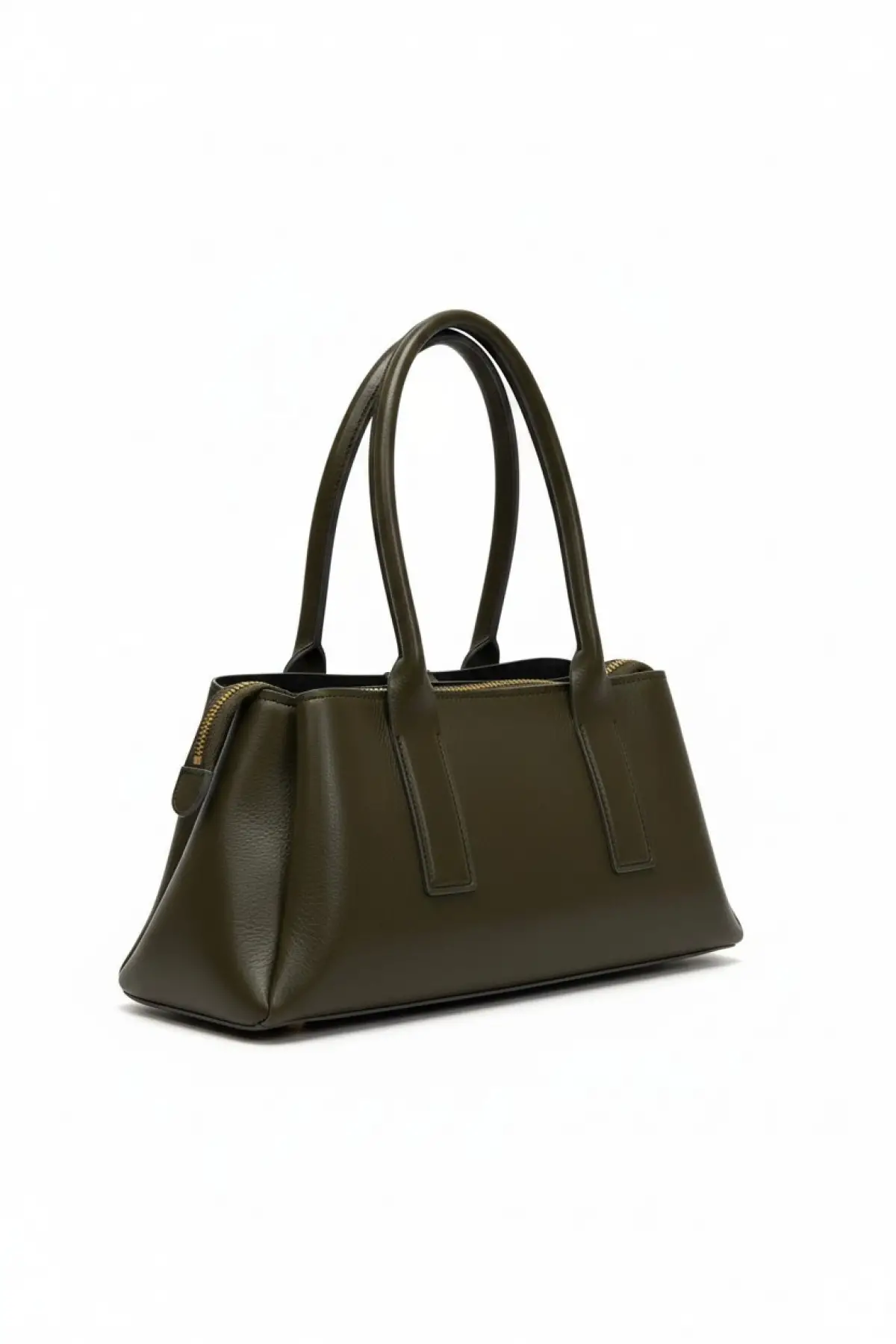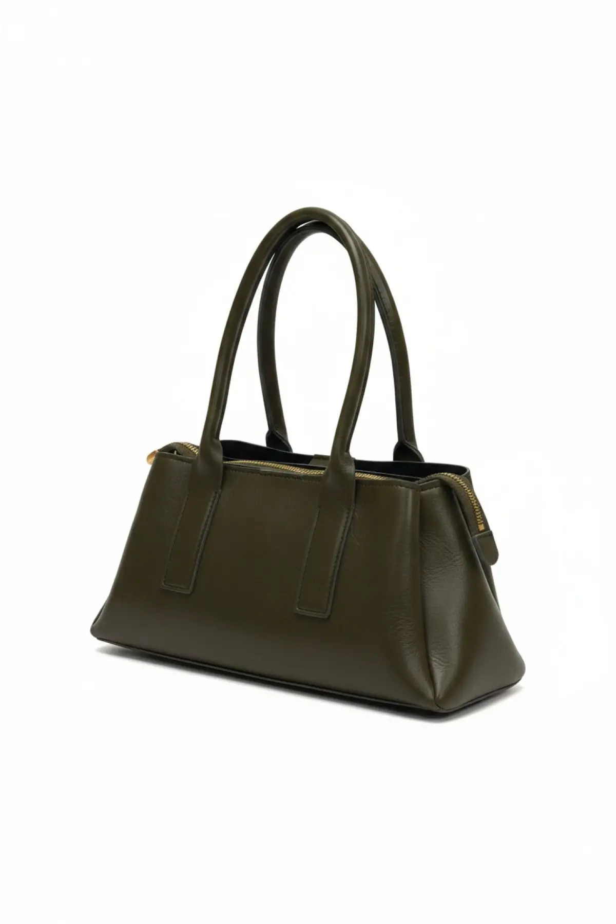 Melina Yağ Yeşili Vegan deri üç bölmeli fermuar kapamalı Kadın el kol ve omuz çantası