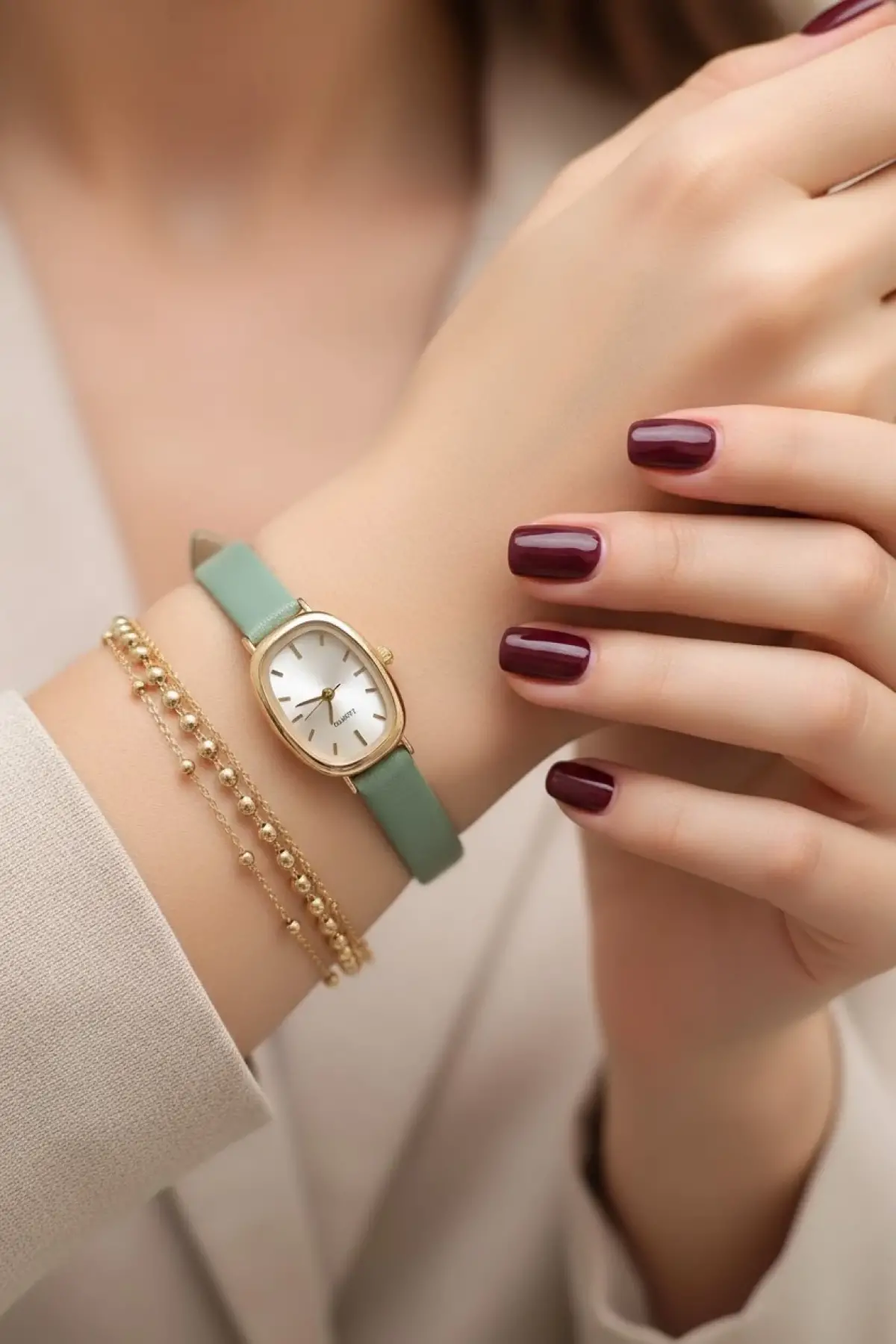Octea Mint Yeşili Deri Kordonlu Kare Minimal Kadın Kol Saati