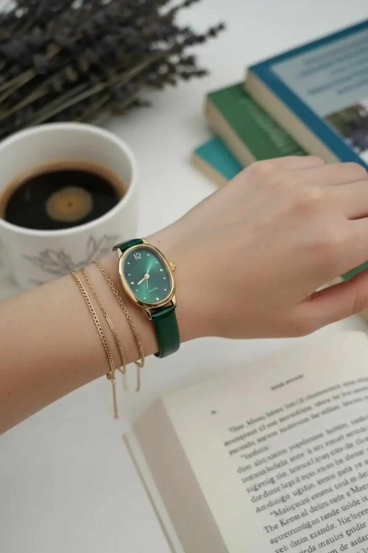 Moi Koyu Yeşil Deri Kordonlu Kare Minimal Kadın Kol Saati