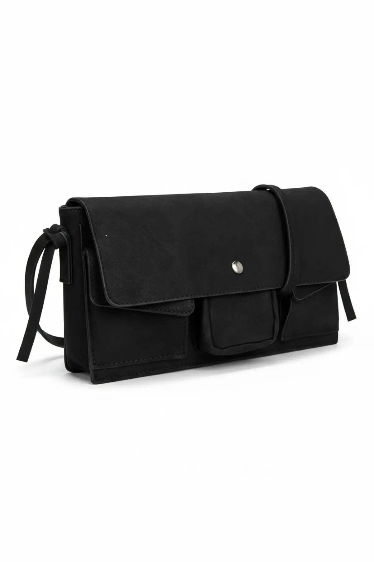 Moli Siyah Süet Cepli Model Baget Kadın Omuz Çantası